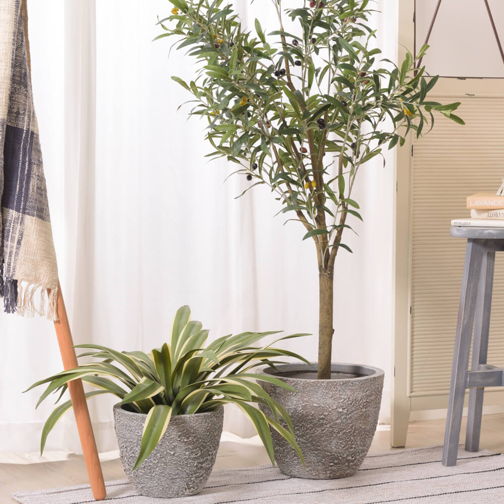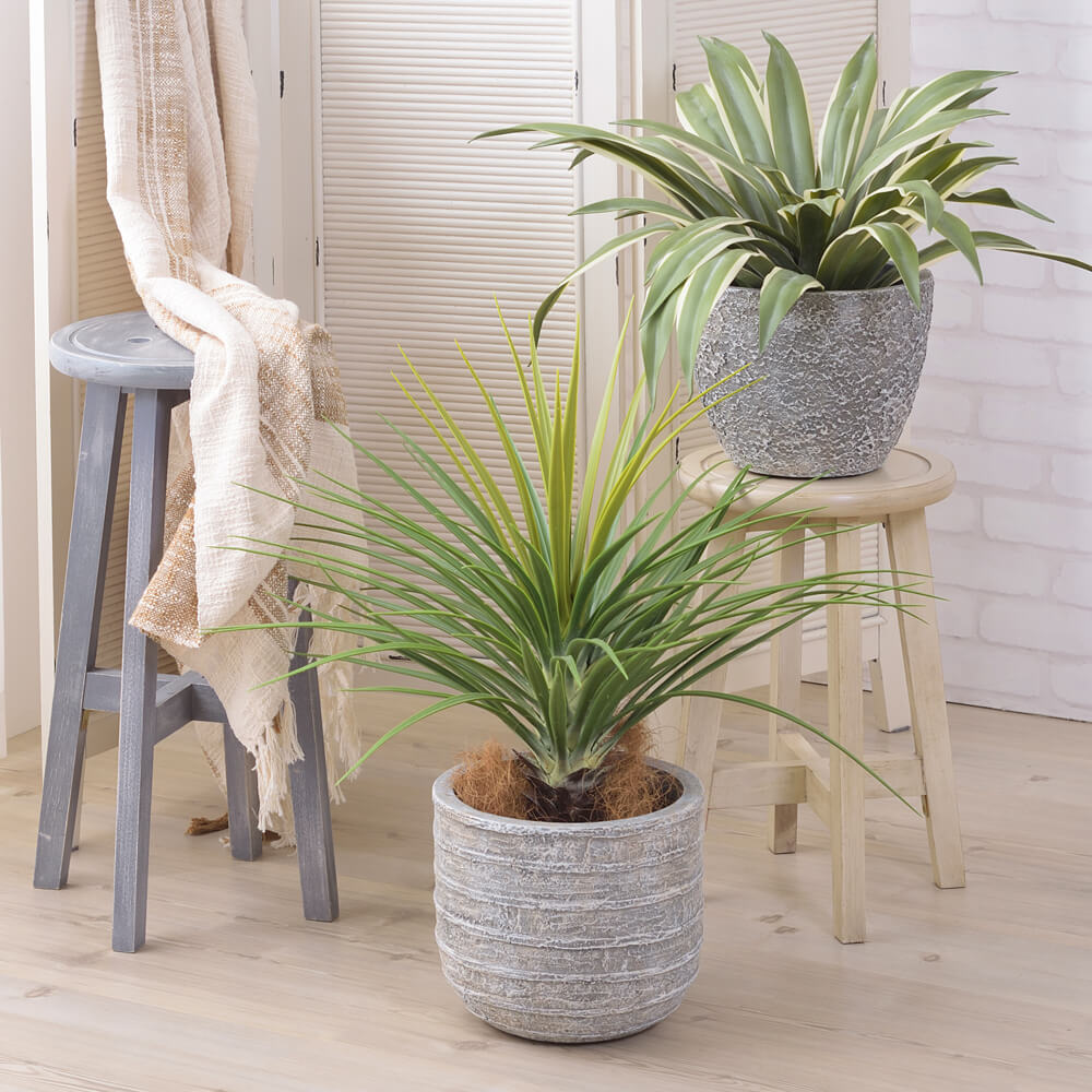 素朴な石造りの風合いがあり、北欧スタイルやナチュラルスタイル、ミッドセンチュリーやインダストリアル、西海岸などのスタイルにも馴染み、上質感を与え、植物の魅力をさらに引きたてます。