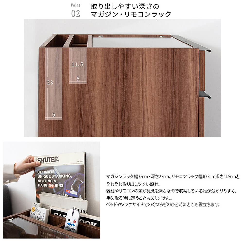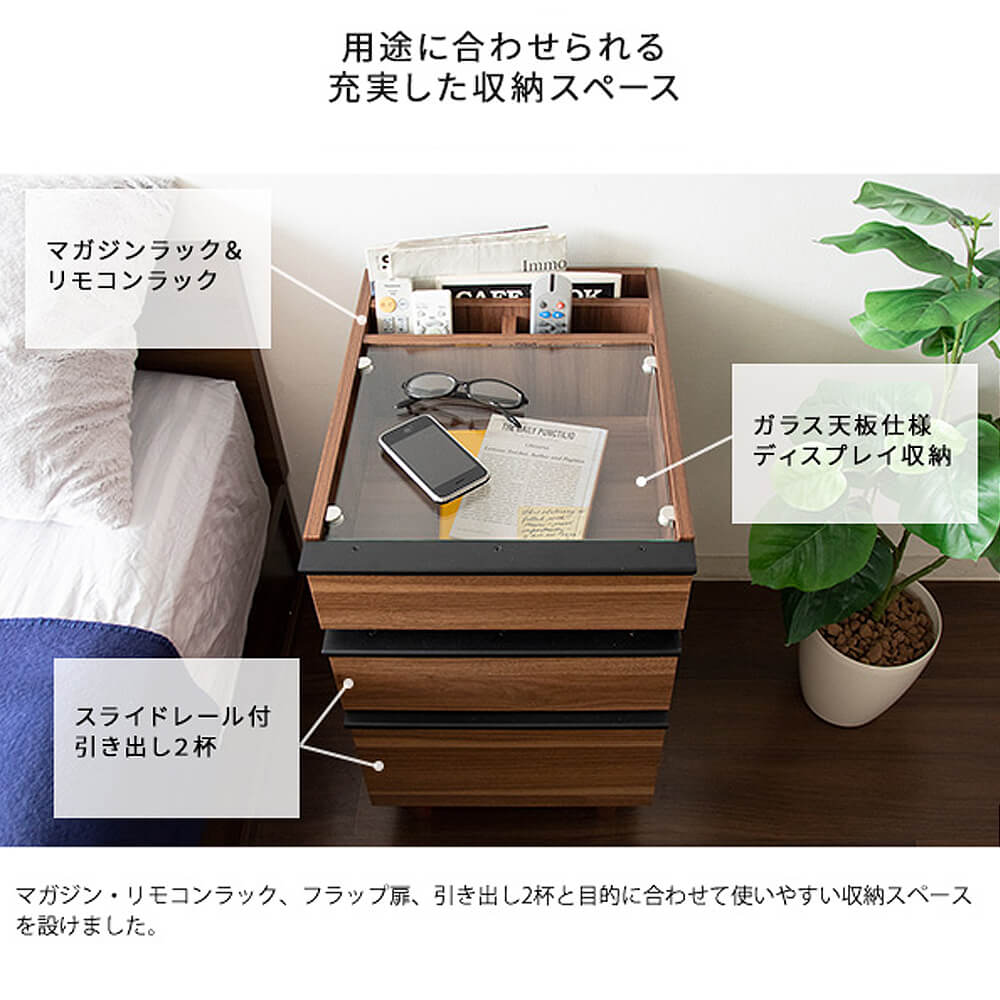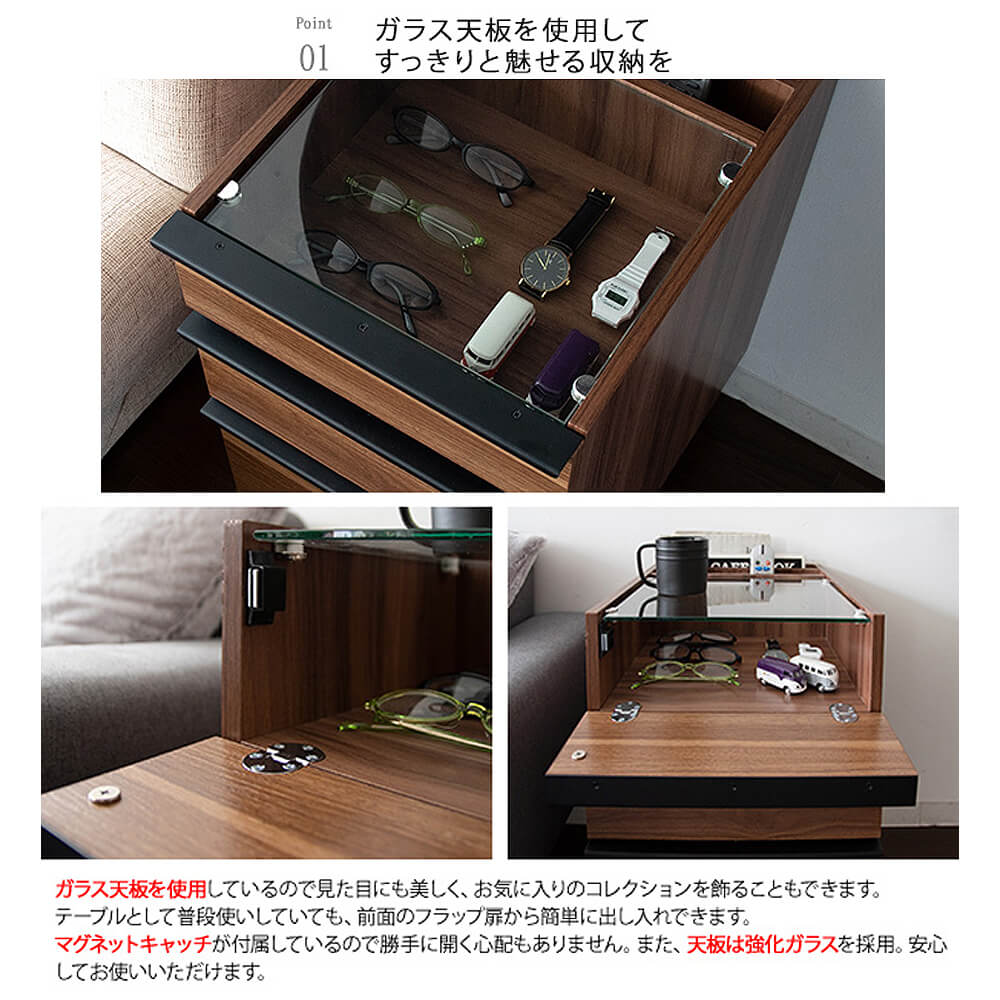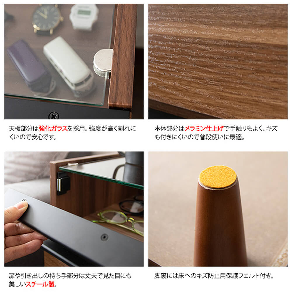 上部はガラス天板を採用しており、魅せる収納が叶います。