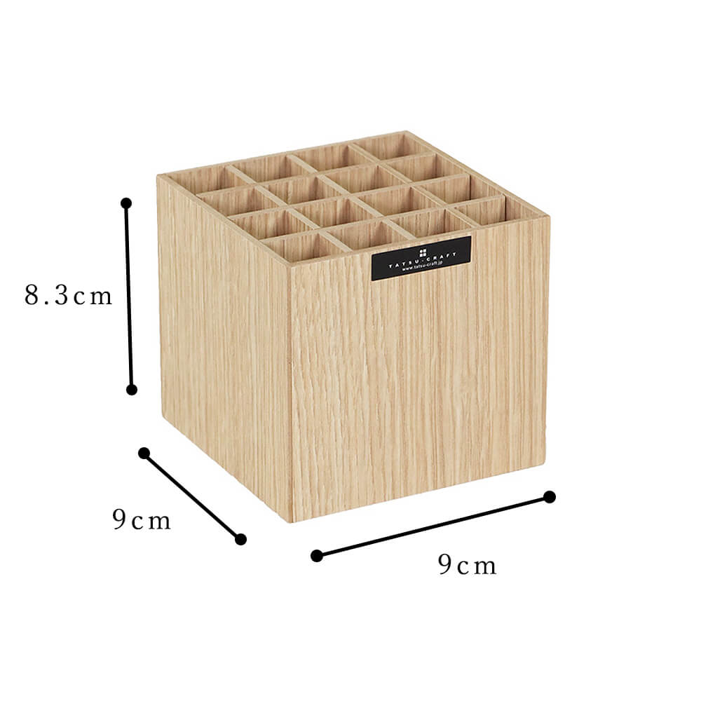 ●たった9cm角のコンパクトなスペースの中に16個ものマスが並んでいるので、16本ものペンが並べられます。