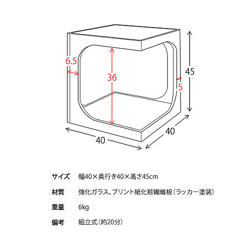 | 素材 | 強化ガラス、プリント紙化粧繊維板(ラッカー塗装) |