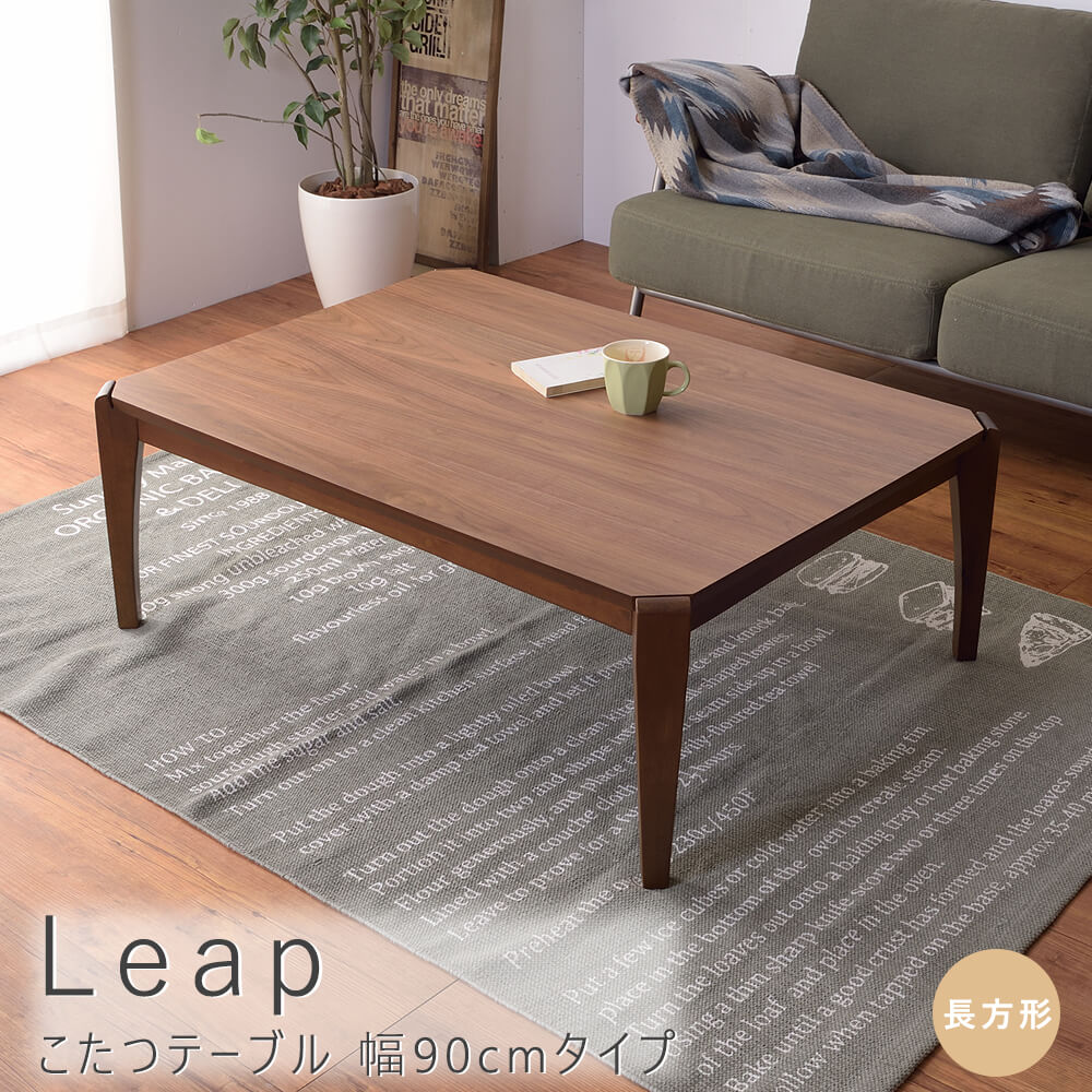 チーク、マホガニーと共に世界三大銘木のひとつに数えられるウォールナットで仕上げた深みのある風合いの上品なこたつテーブルLeap(リープ)。