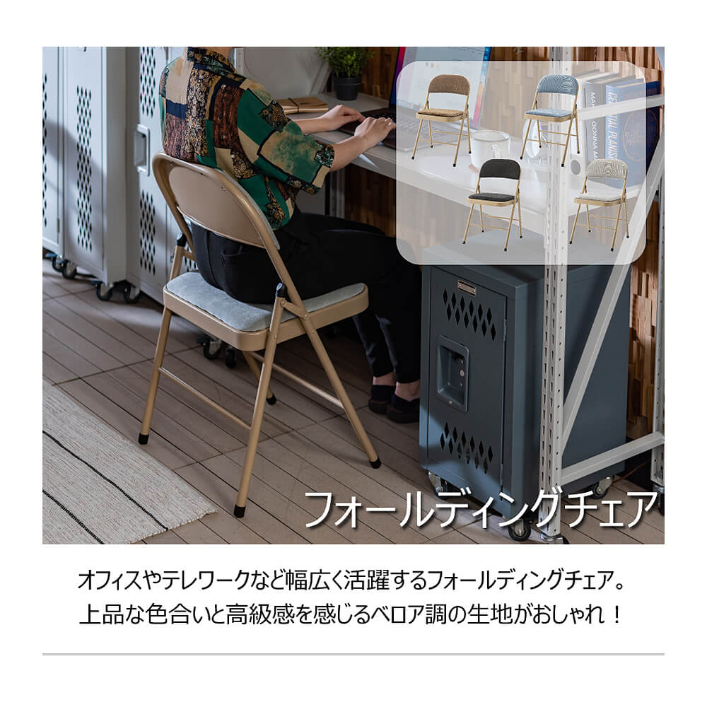オフィスやテレワークなどの作業スペースや、急な来客の際など、幅広く活躍する実用性とデザイン性を兼ね備えたカラーフォールディングチェアーMou(モウ)。