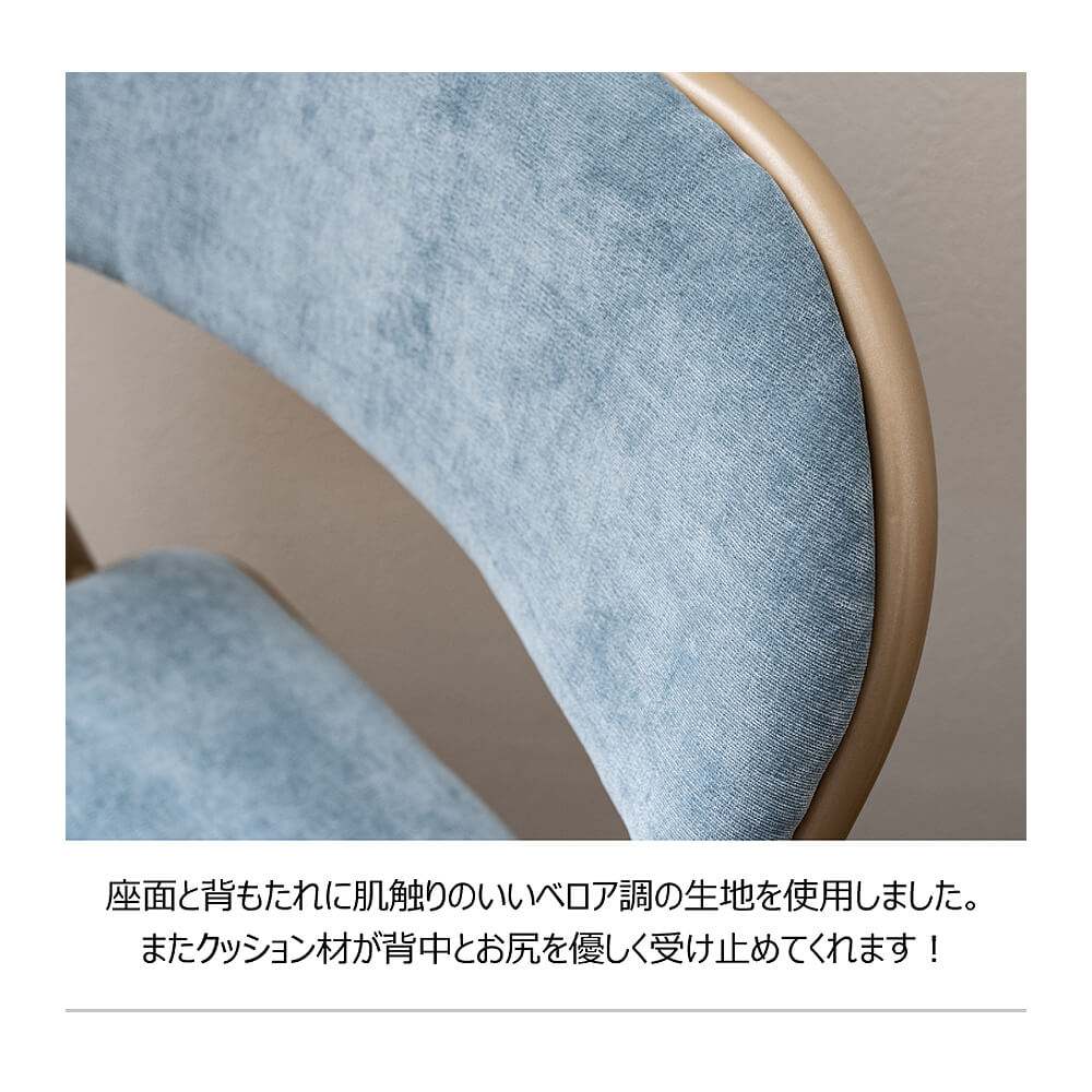 そして、座面と背もたれには、肌触りのいいベロア調の生地を採用しました。