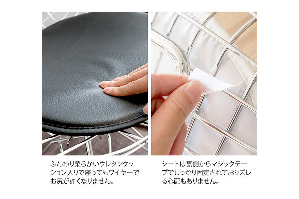 座面のクッションはブラックとホワイトの2カラーをご用意。