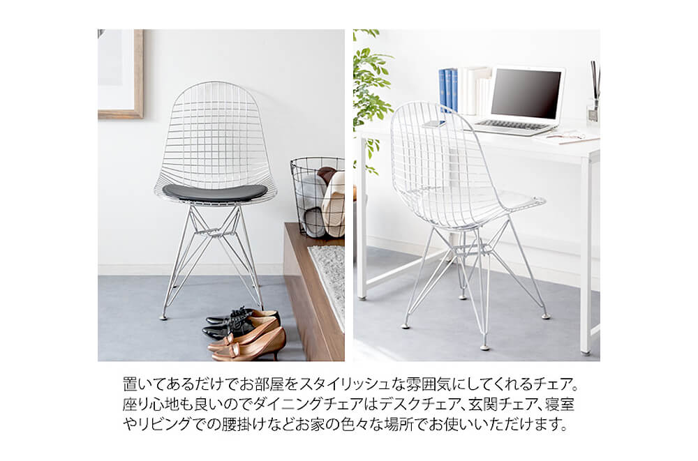 「ワイヤーメッシュチェア」「ワイヤーチェア」とも呼ばれ今でも人気のアイテムです。