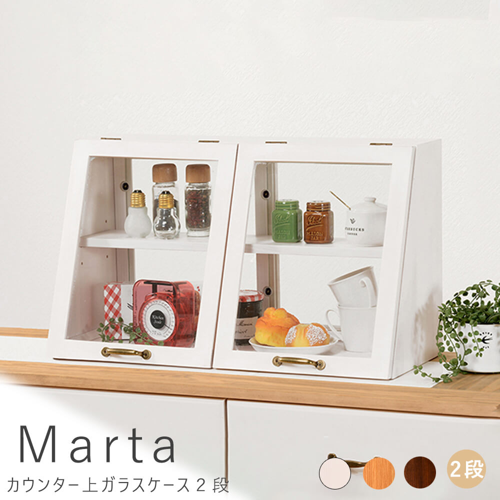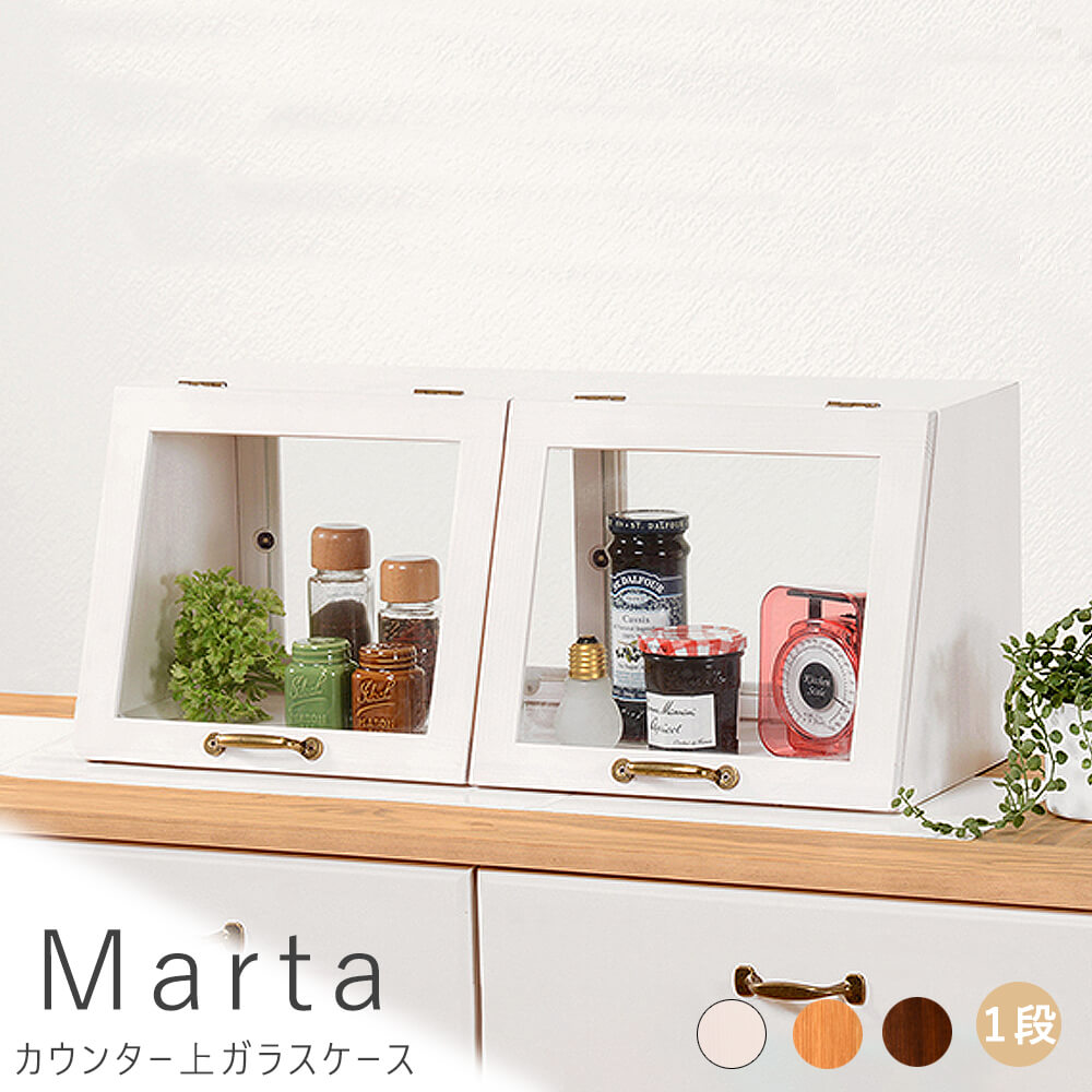 Marta(マルタ)の木の風合いが味わい深いカウンター上ガラスケース。