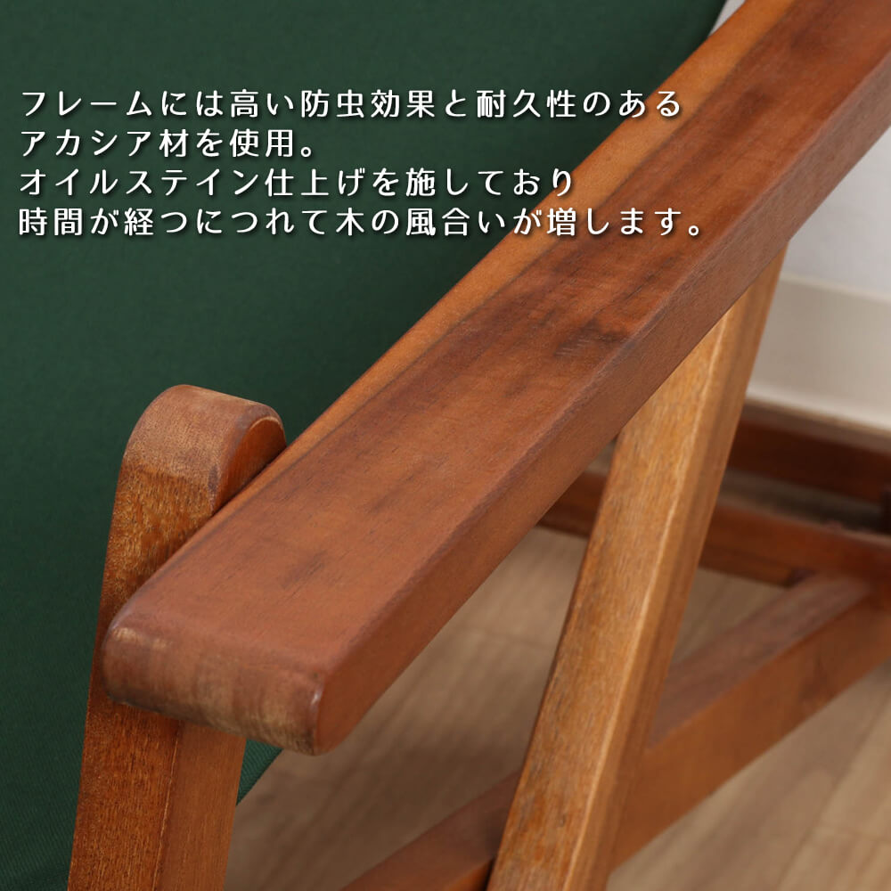 | 素材 | 構造部材:天然木(アカシア材) 表面加工:オイルステイン 張り材:ポリエステル |