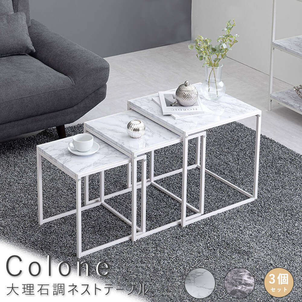 モダンな雰囲気の大理石調の天板を採用したシャビーな印象を醸し出すサークル型ネストテーブルColone(コロネ)。