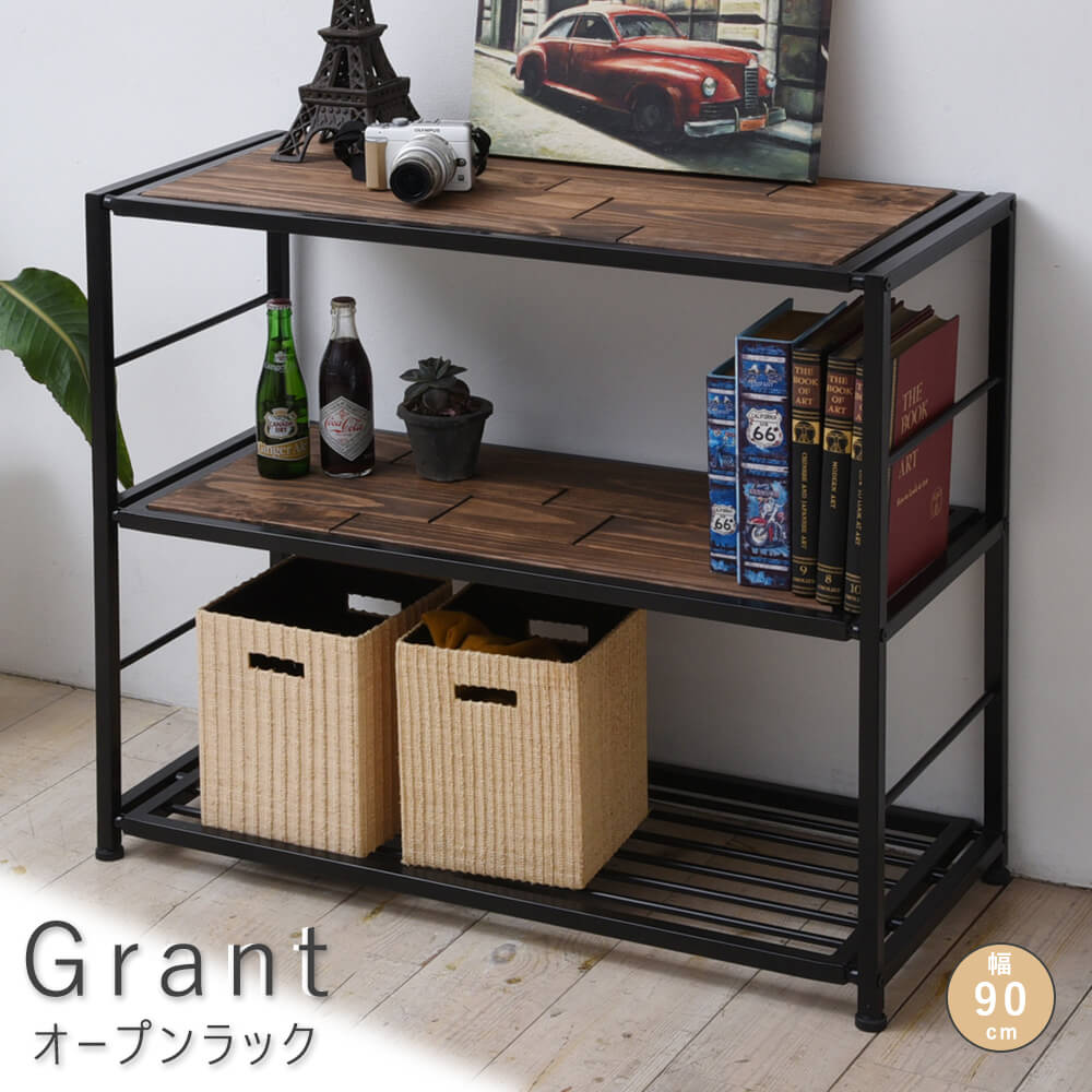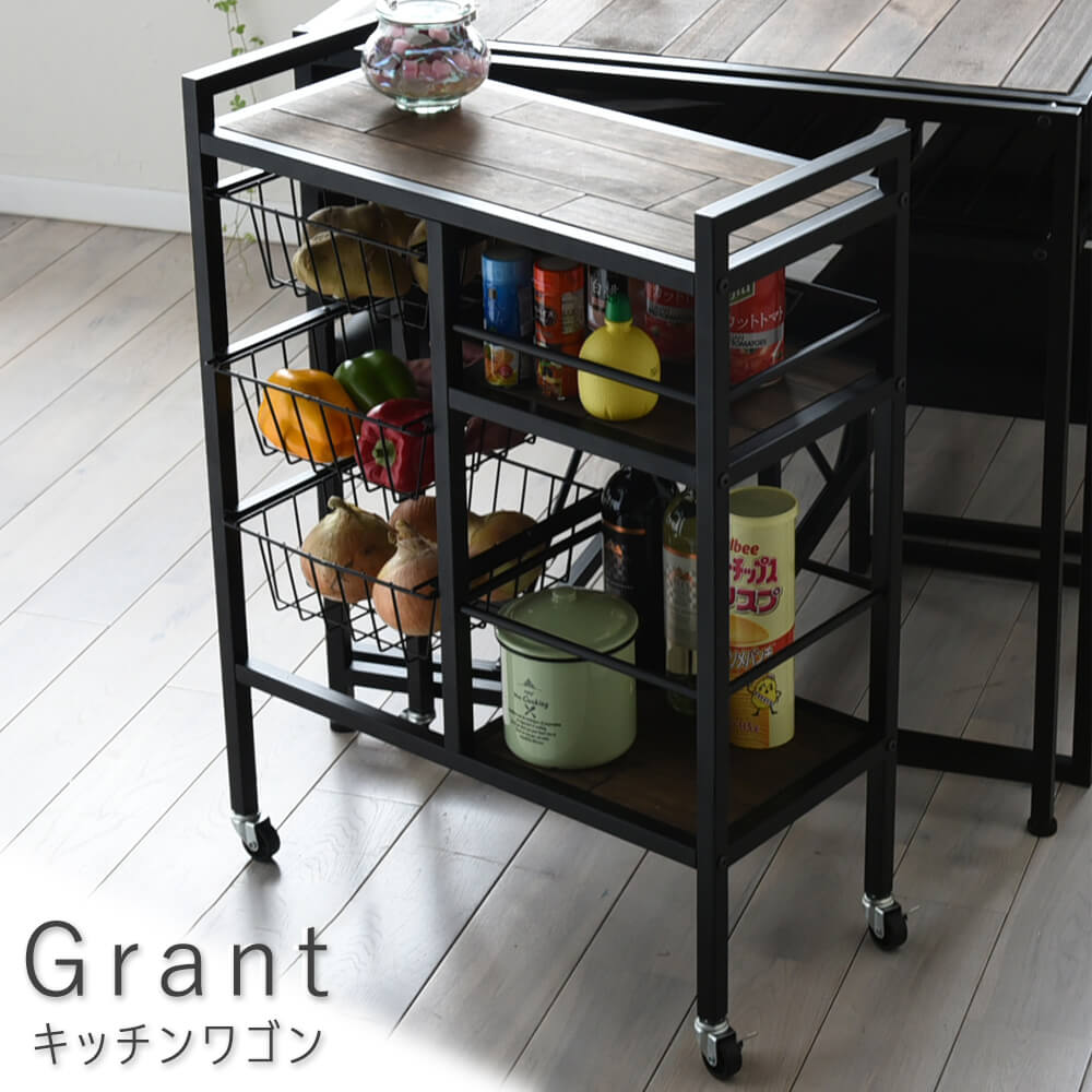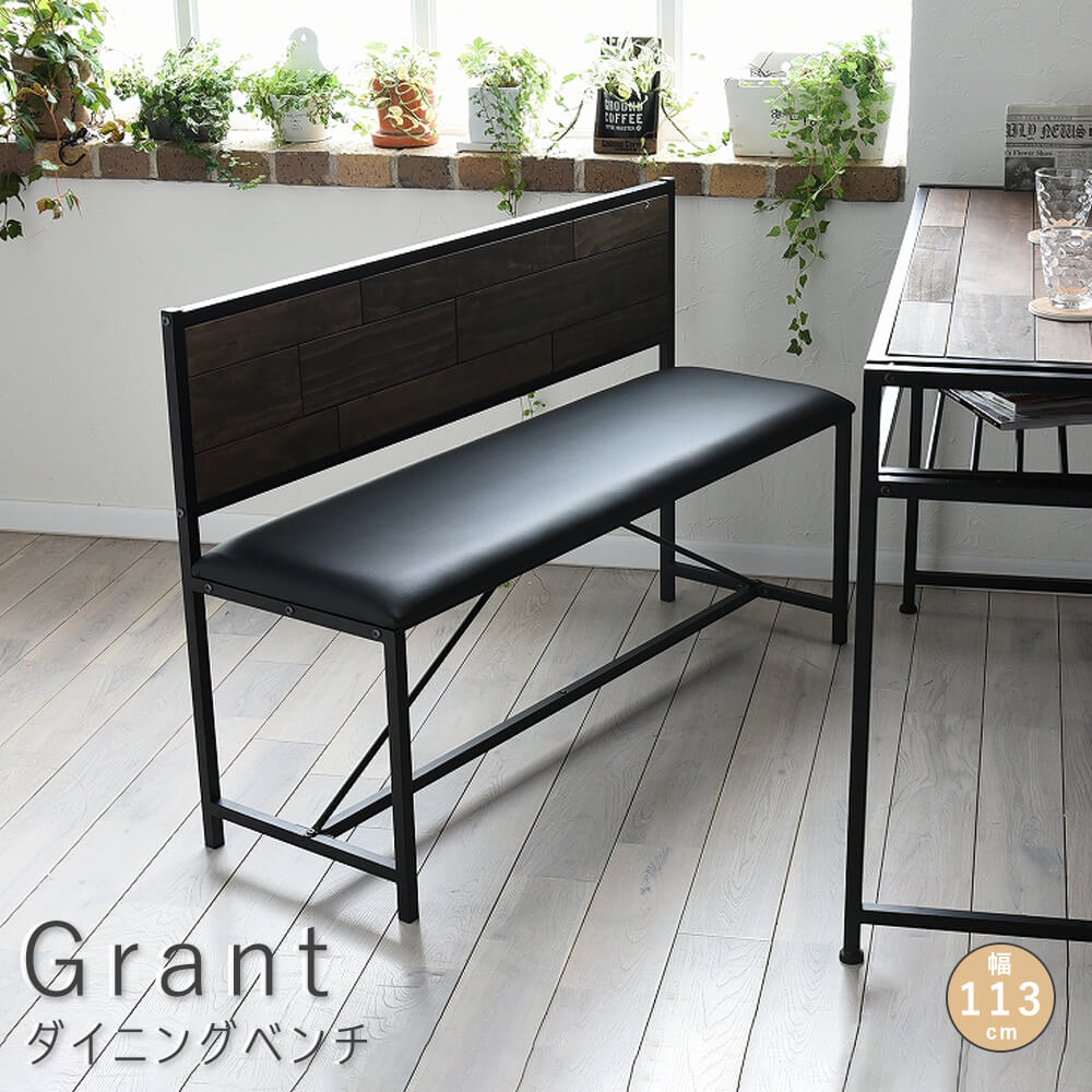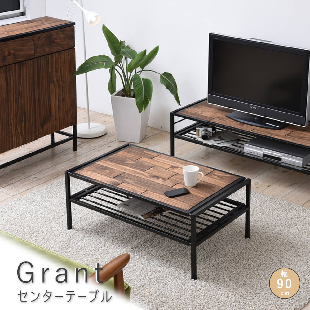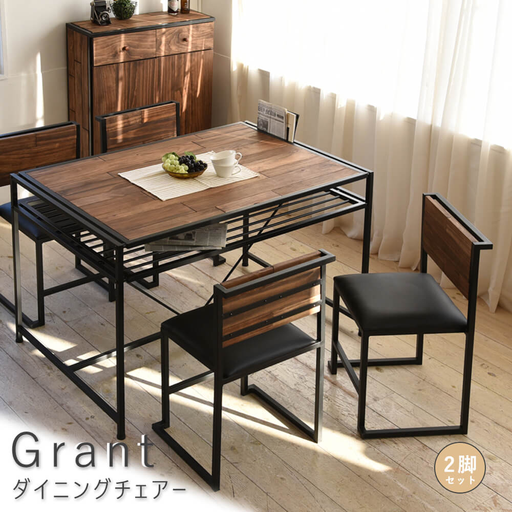 エイジング加工により長い年月使い込んできたかのような風合いを醸し出す天然パイン材に無機質なアイアンスチールの組み合わせがクールな印象のダイニングテーブルGrant(グラント)。