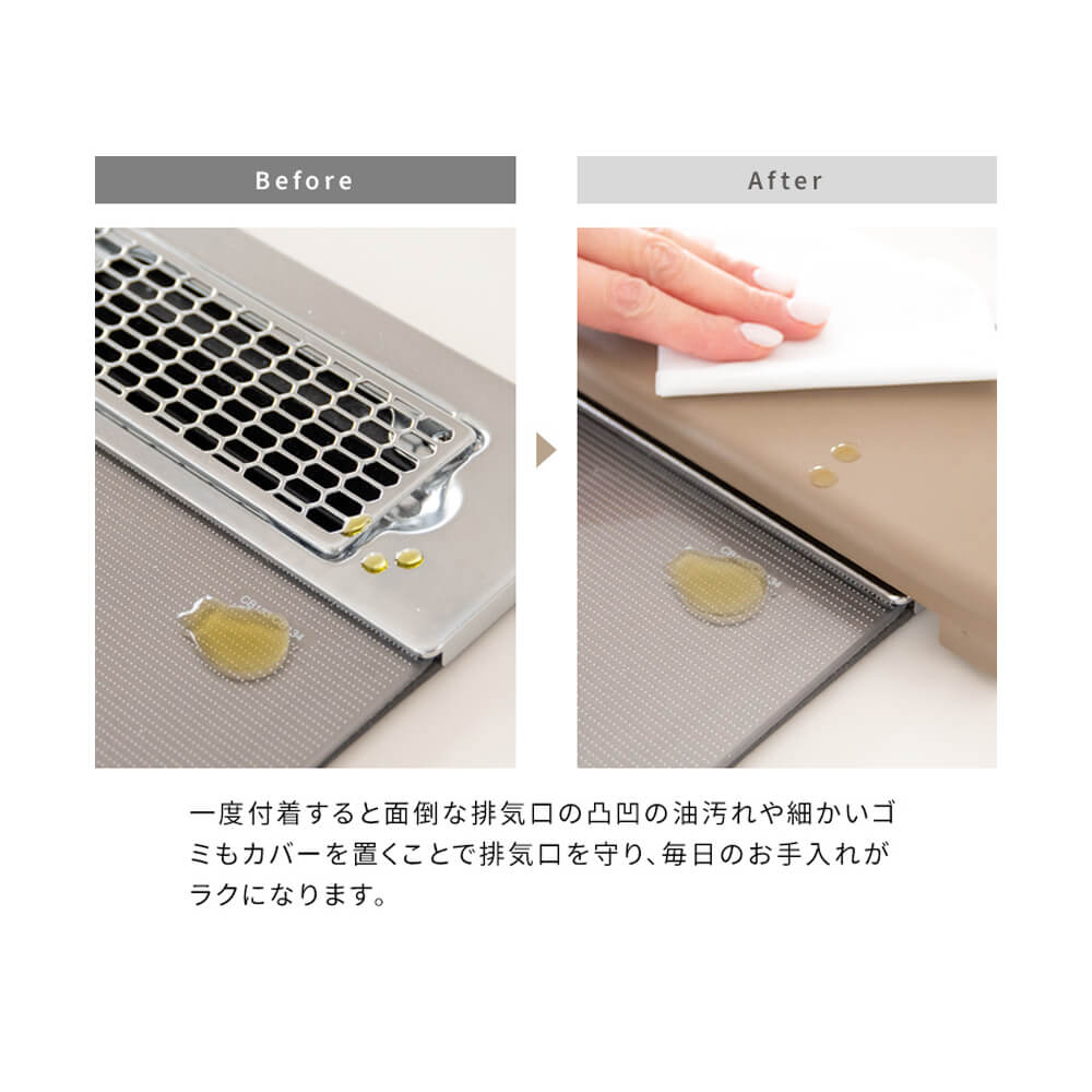 排気口の上に置くだけで油飛びや調味料汚れをしっかりとガードしてくれる便利な排気口カバー『Metier(メティエ)』。