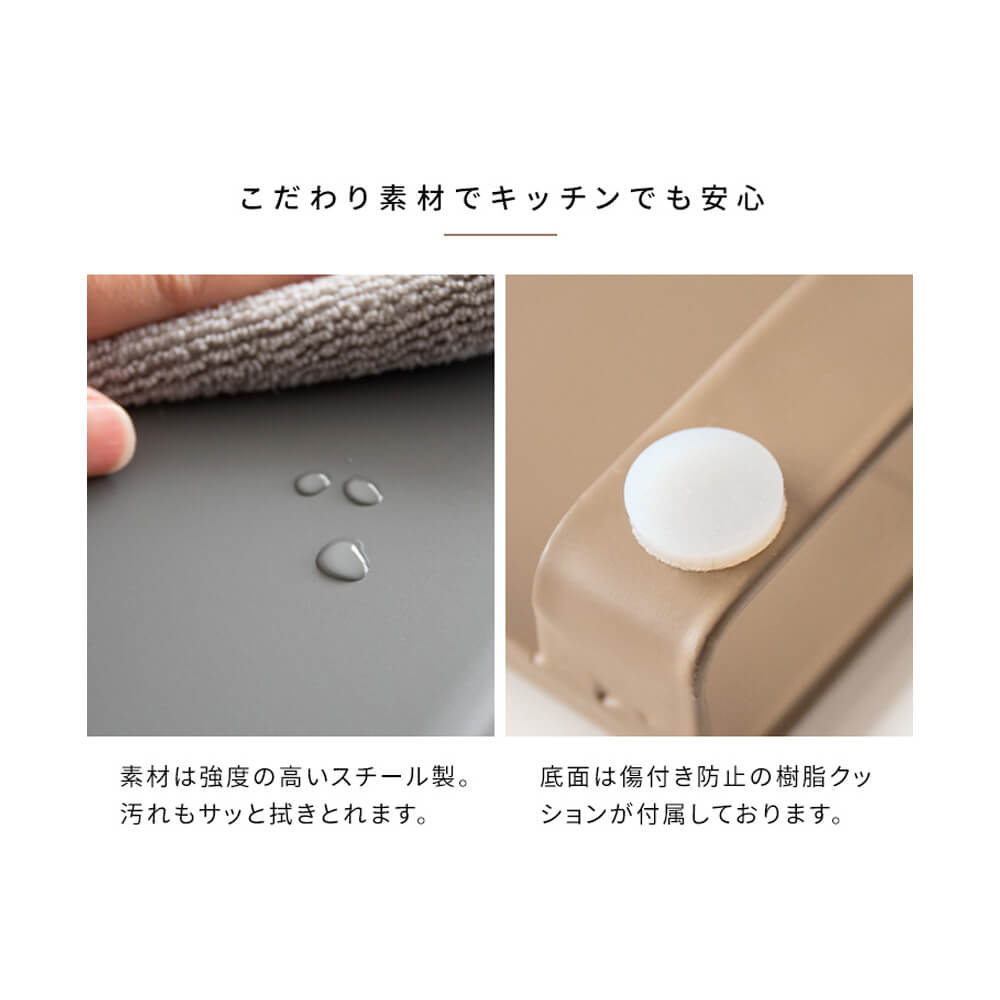 カラーはグレージュ、モカ、チャコールの3カラーをご用意。キッチンの雰囲気やお好みでお選びいただけます。