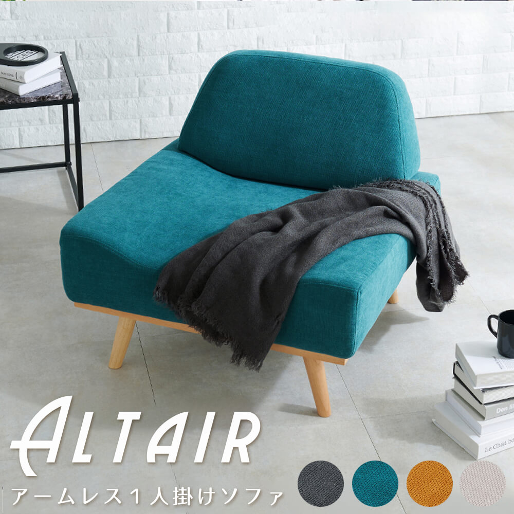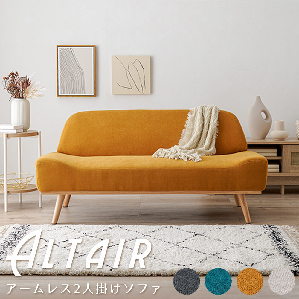 空間に圧迫感を与えないローデザインの二人掛けソファ『Altair (アルタイル)』。