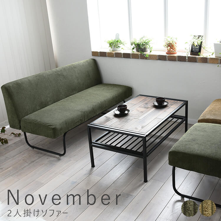 アイアンフレームとコーデュロイ生地がレトロな雰囲気を醸し出し、あたたかみのあるくつろぎ空間を演出してくれます。