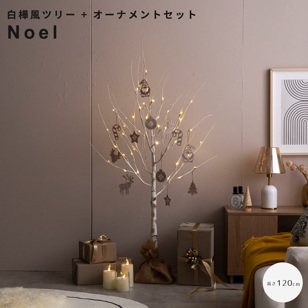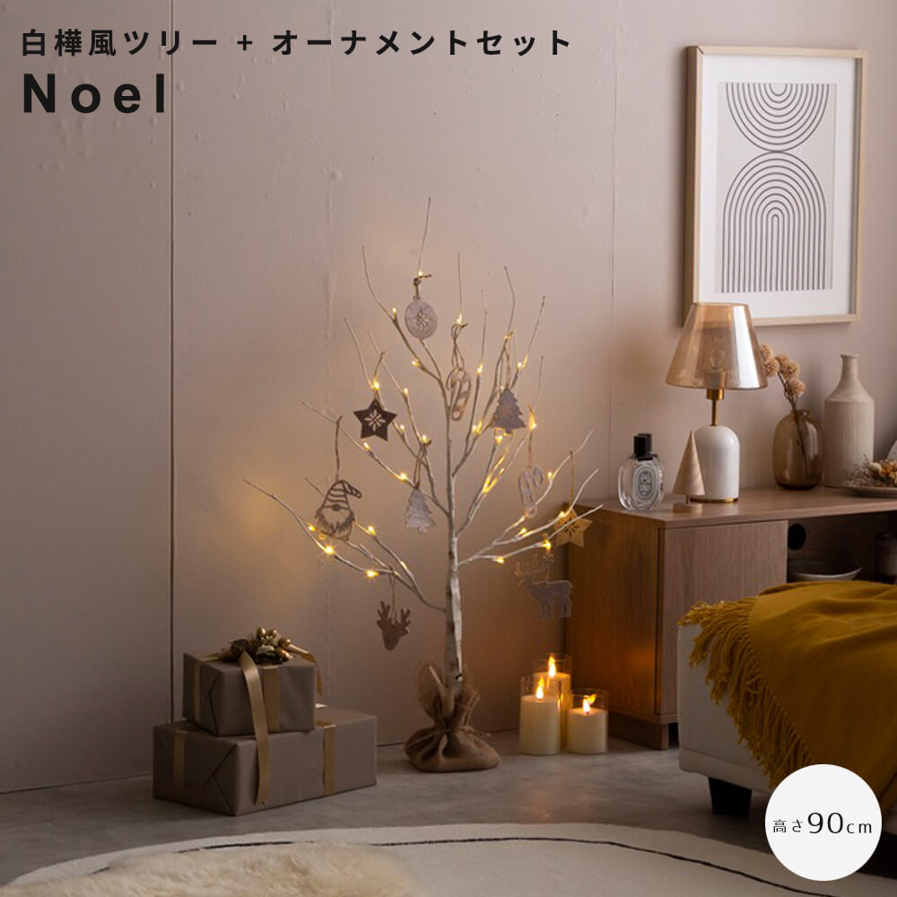 届いてすぐ使えるシンプルで上品な印象のブランチツリーとオーナメントのセットNoel(ノエル)。