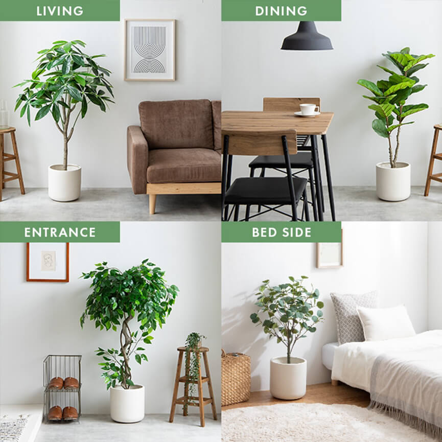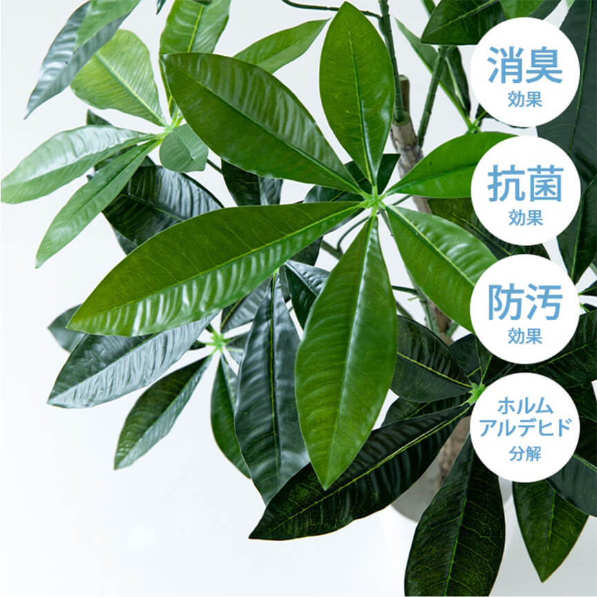 光触媒人工植物は、照明光が当たることで消臭・抗菌・防汚・ホルムアルデヒド分解の効果を発揮。お部屋に潤いを加えるだけでなく空気も浄化し、日々の暮らしに安らぎをプラスします。