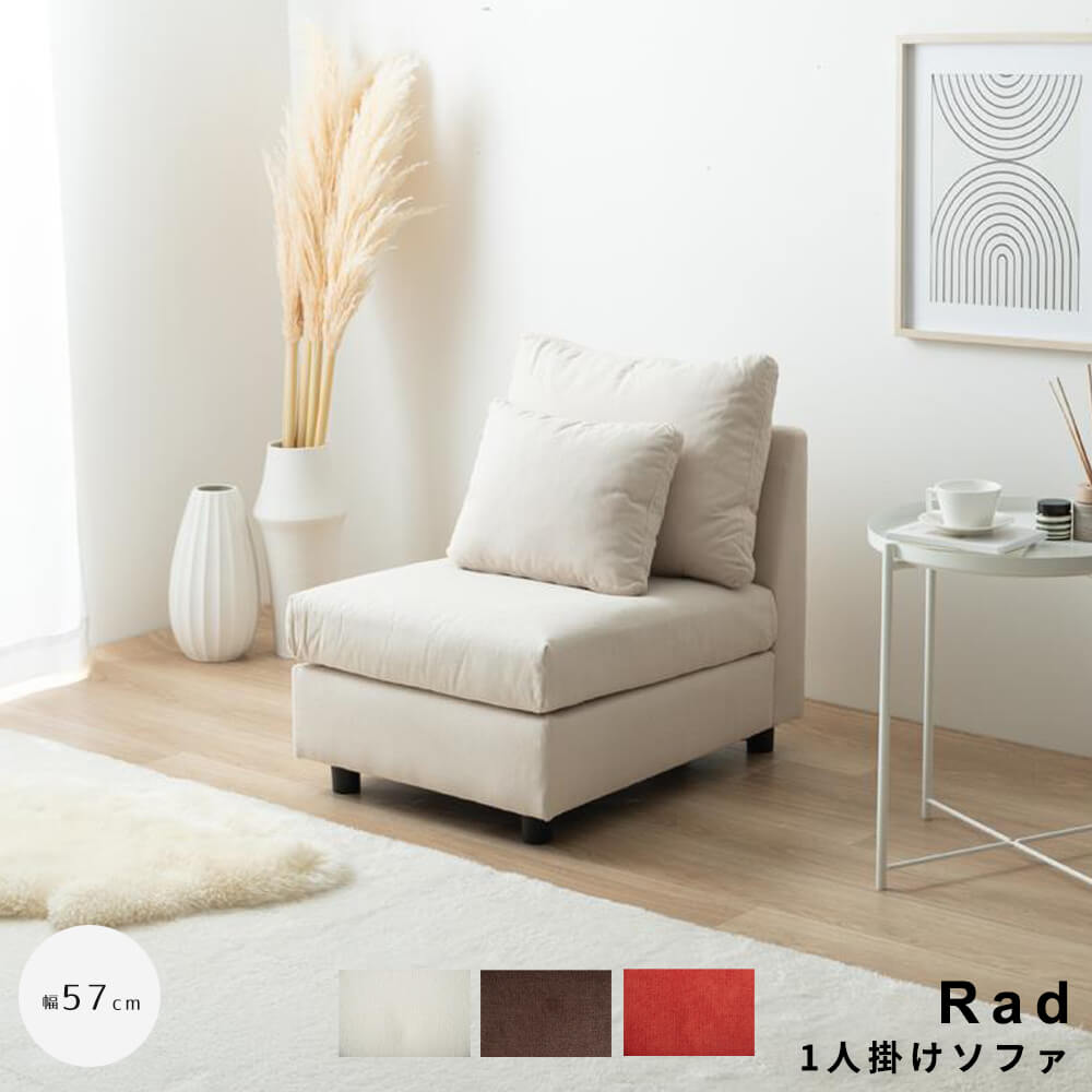 また、1人掛けソファ2点でよりコンパクトな幅116cmのアームレスソファになり、スペースに余裕のないお部屋にもオススメです。