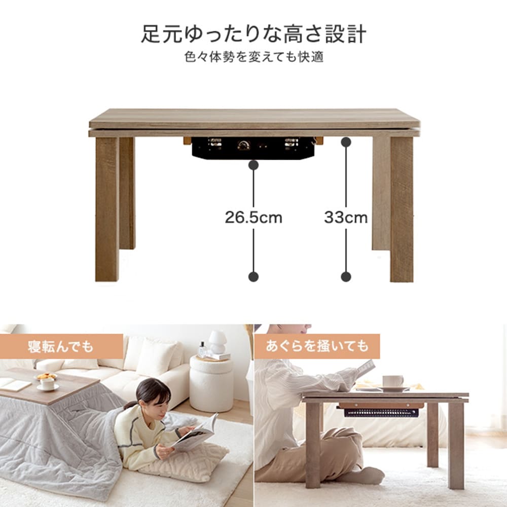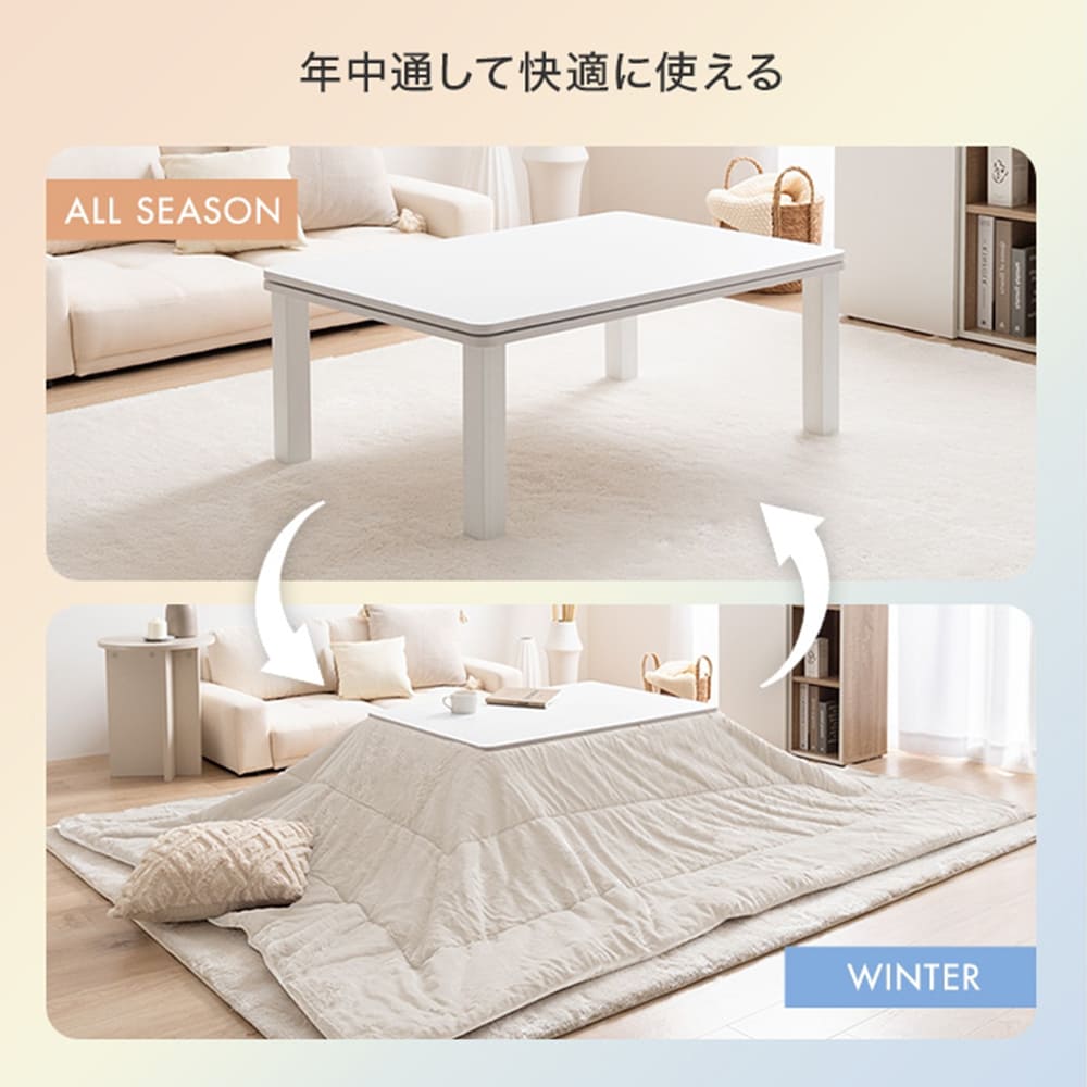 寒い季節はこたつ布団を合わせて、暖かい季節にはローテーブルとして、季節問わず年中お使いいただけます。
