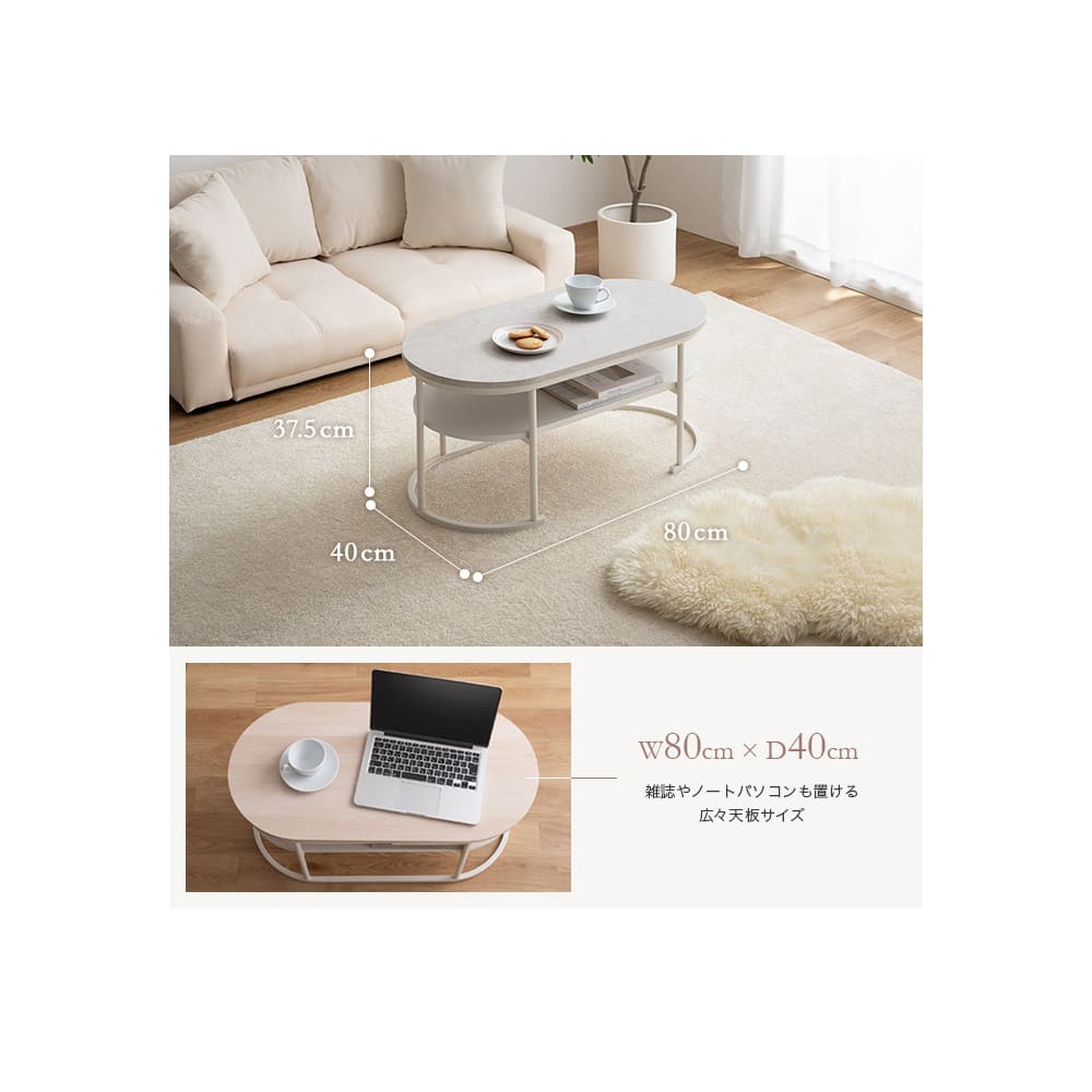 丸みのあるフォルムがやさしい印象に。収納もできるおしゃれなセンターテーブルBiancaneve(ビアンカネーヴェ)