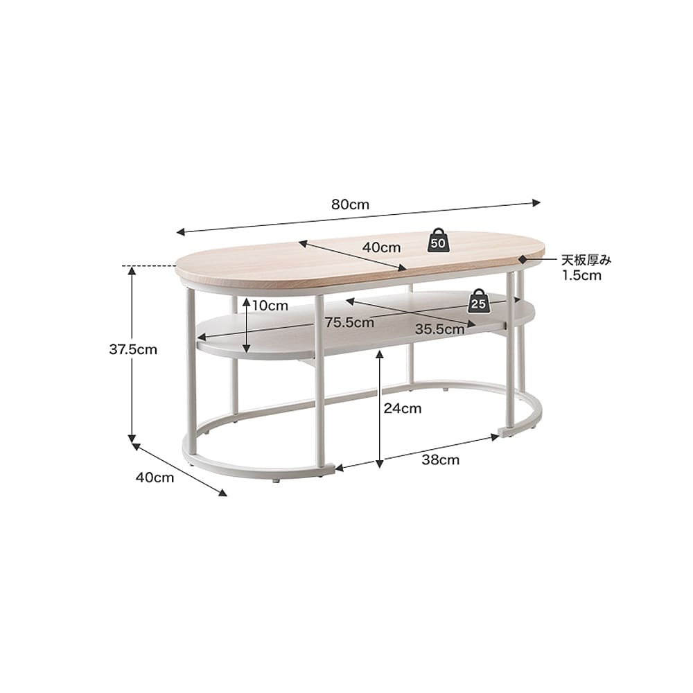 | サイズ(約) | 本体サイズ: 幅 80cm × 奥行 40cm × 高さ 37.5cm 商品重量: 約7.3kg 耐荷重: 天板:約50kg 、棚板:約25kg |