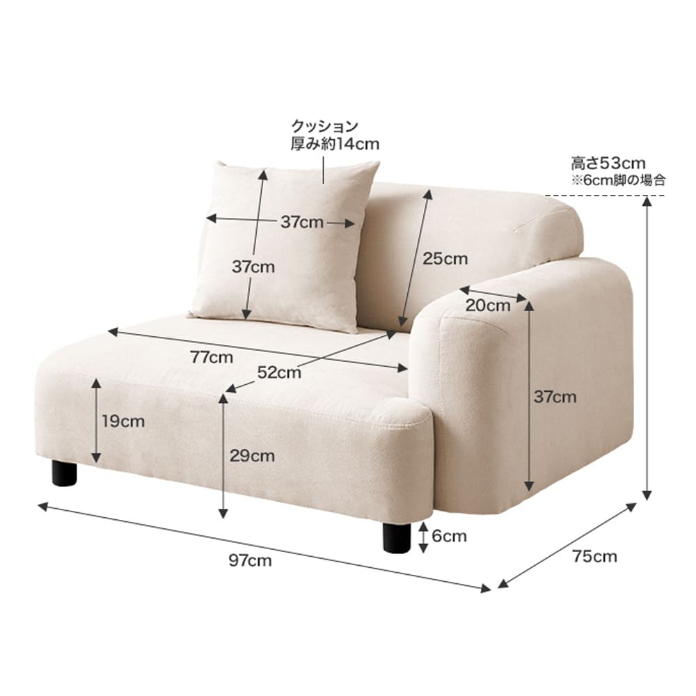 | サイズ(約) | 本体サイズ: 幅 97cm × 奥行 75cm × 高さ 53cm 座面高 : 1.5cm脚 24.5cm、6cm脚 29cm、10cm脚 33cm 商品重量: 約20kg 耐荷重: 約150kg |