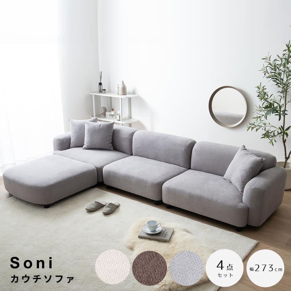 丸み×シンプルで洗練空間に溶け込むSoni(ソニ)シリーズコーナーソファ。