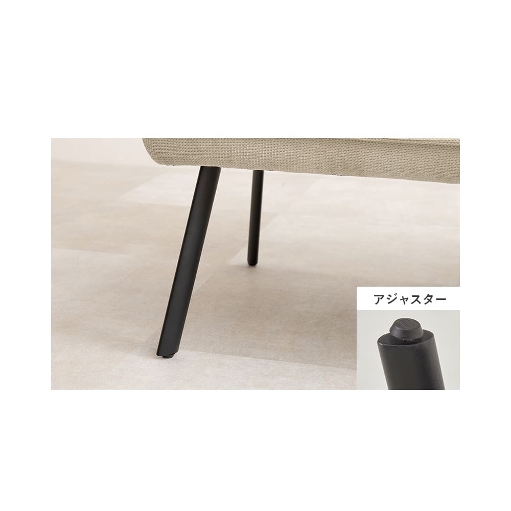 耐久性の高いスチール脚部にはアジャスターが付いており、床へのがたつきも防止。