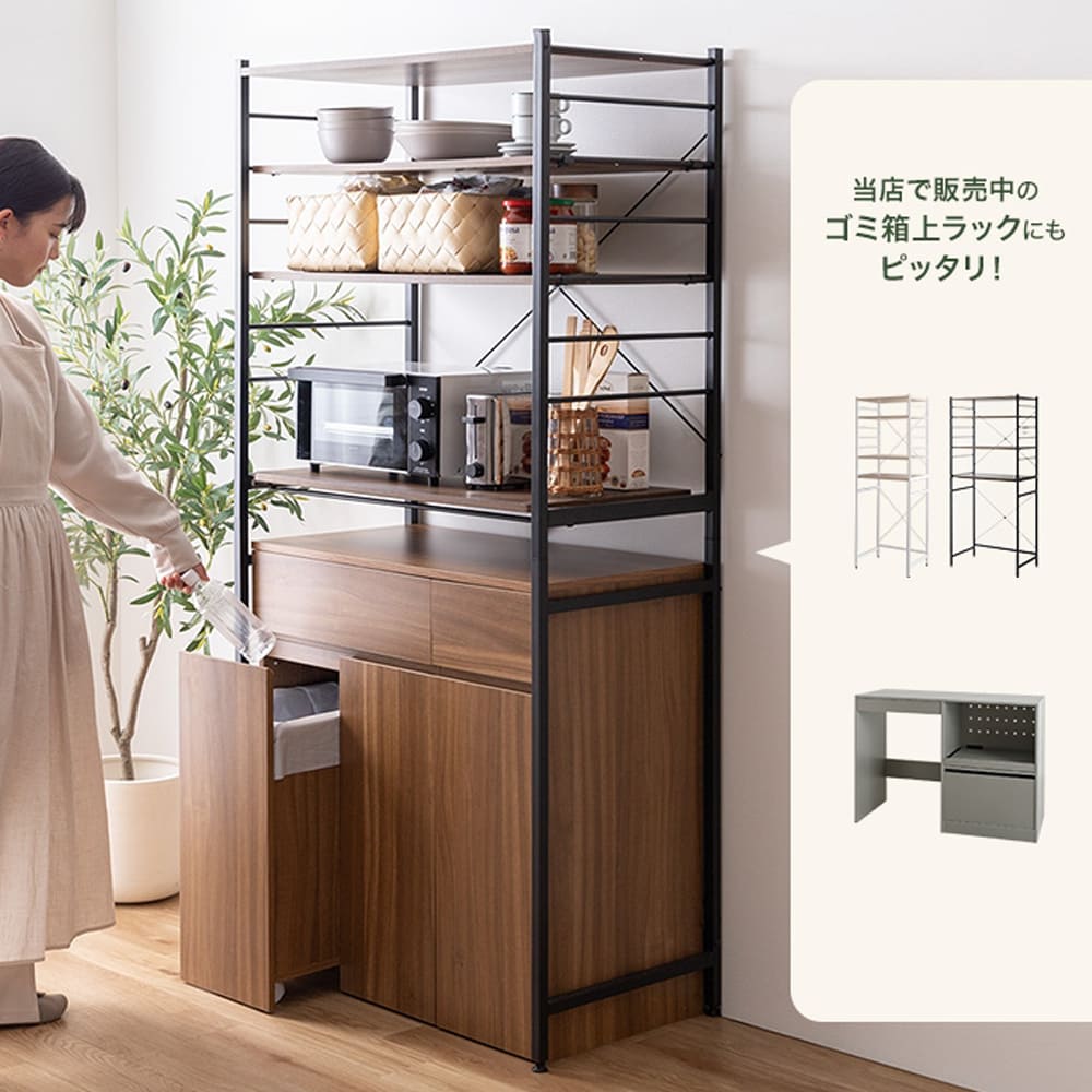 単品使いでも十分便利ですが、ゴミ箱上ラックと合わせることでさらにキッチンを有効的にお使いいただけます。