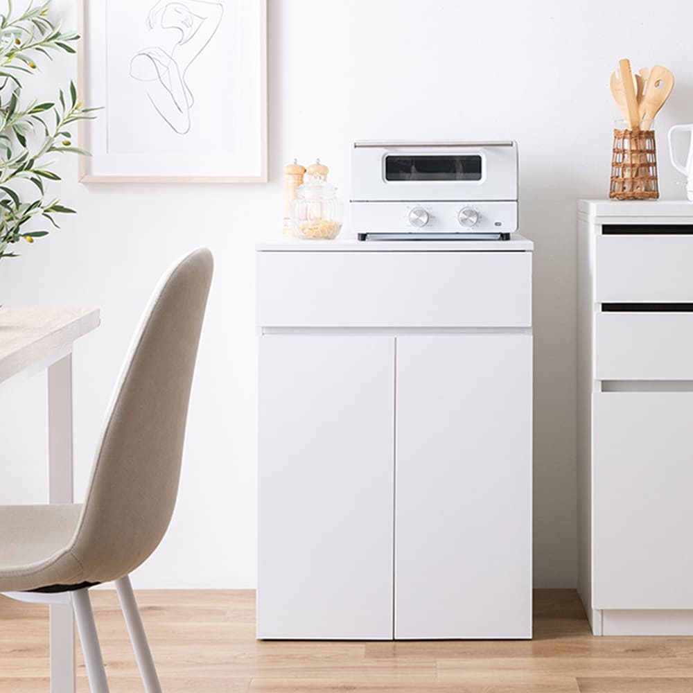 また、コードスリット付きのため、レンジや炊飯器などキッチン家電を置くのもおすすめです。