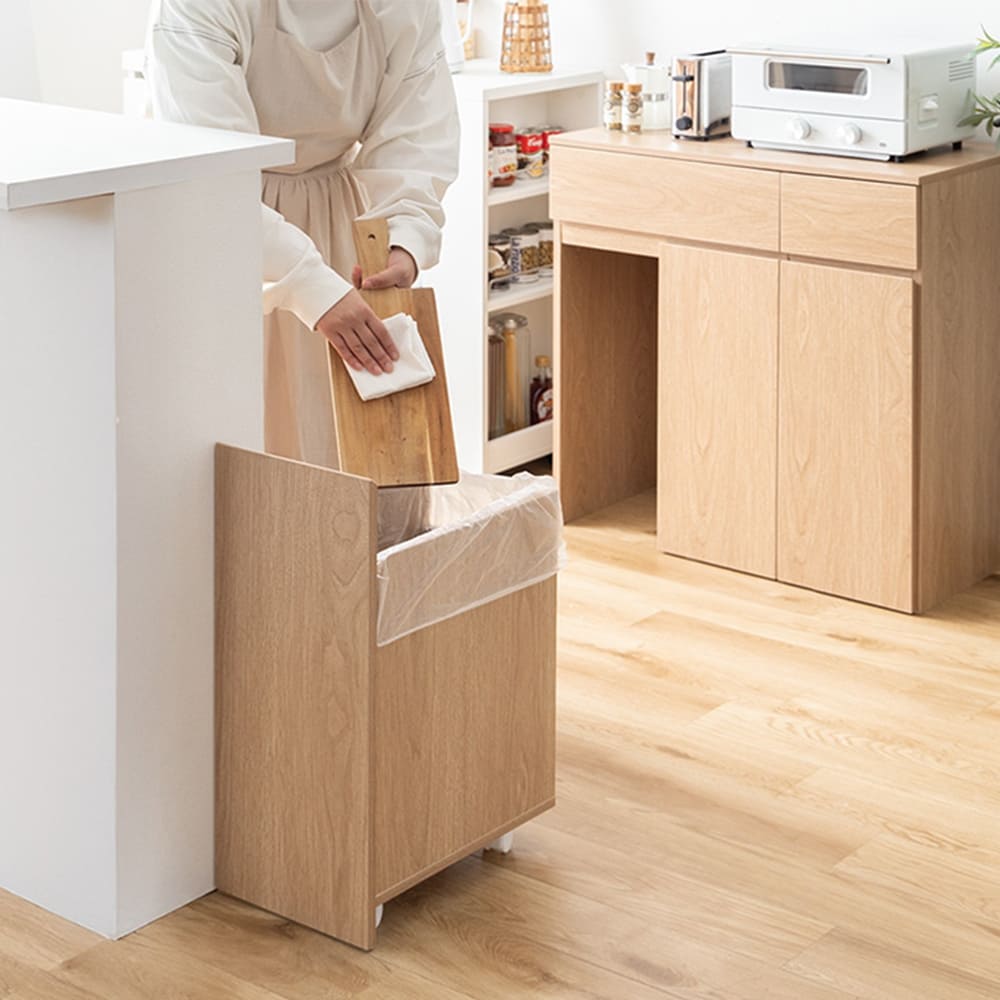 カウンター横やシンク横など作業スペースのそばに引き寄せて使ったり、出しっぱなしにしてまとめてゴミを捨てたりと、ゴミ捨てが快適に。
