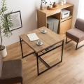 温もりを感じる木目調の天板と、直線的なアイアン脚の組み合わせが、洗練されたインテリアにぴったりマッチします。