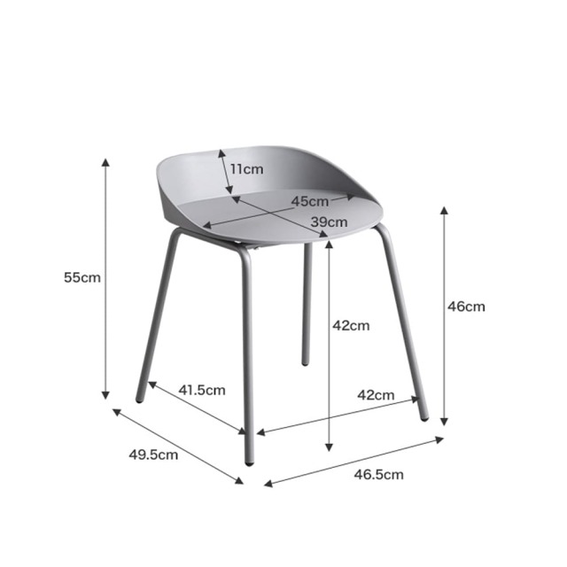 | サイズ(約) | 本体サイズ: 幅 46.5cm × 奥行 49.5cm × 高さ 55cm (座面高 46cm) 商品重量: 約 3.5kg 耐荷重: 約 130kg |