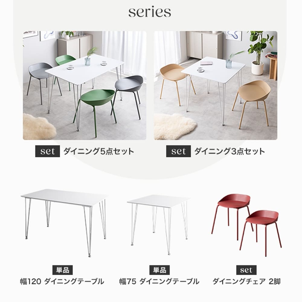 カラーバリエーションは5色(グレー、クリーム、イエロー、レッド、グリーン)から選べて、ダイニングに彩りをプラスしたり、お部屋のアクセントにもぴったり。