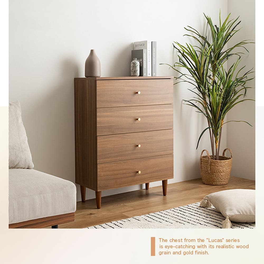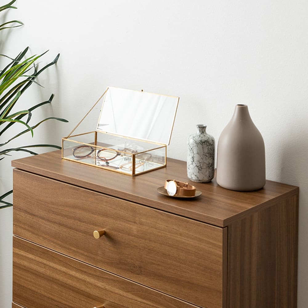 リアルな木のぬくもりを感じるナチュラルな風合いと、ゴールドの取っ手が目を惹くデザイン。