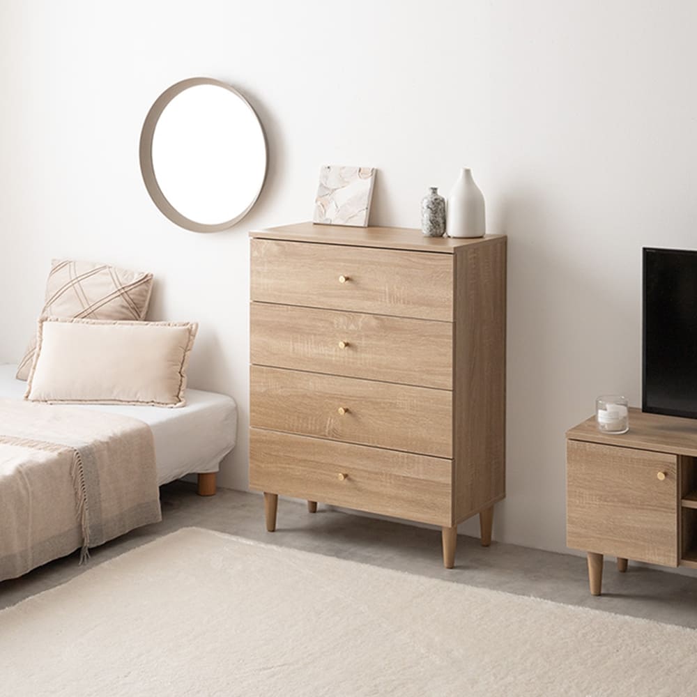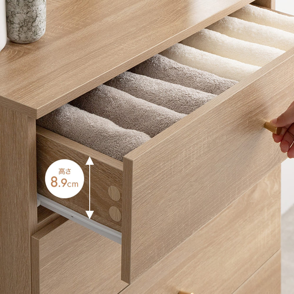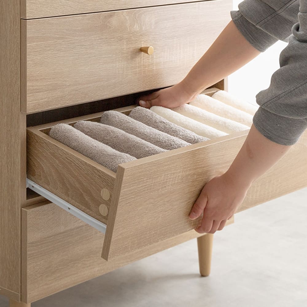 引き出しは4段に分かれていて、衣類やタオル、小物までしっかり収納可能。