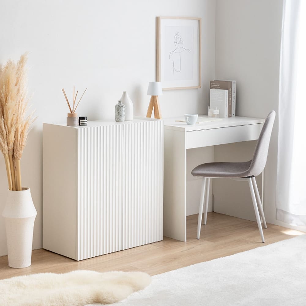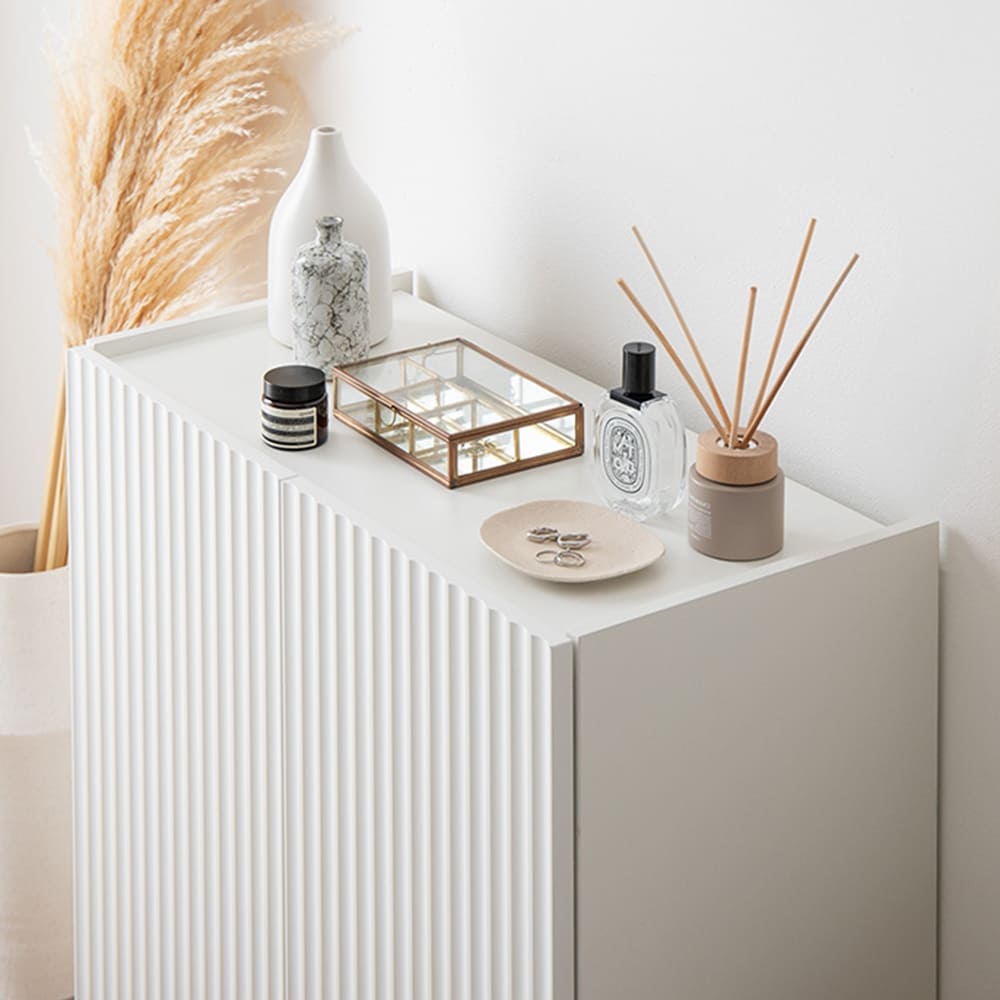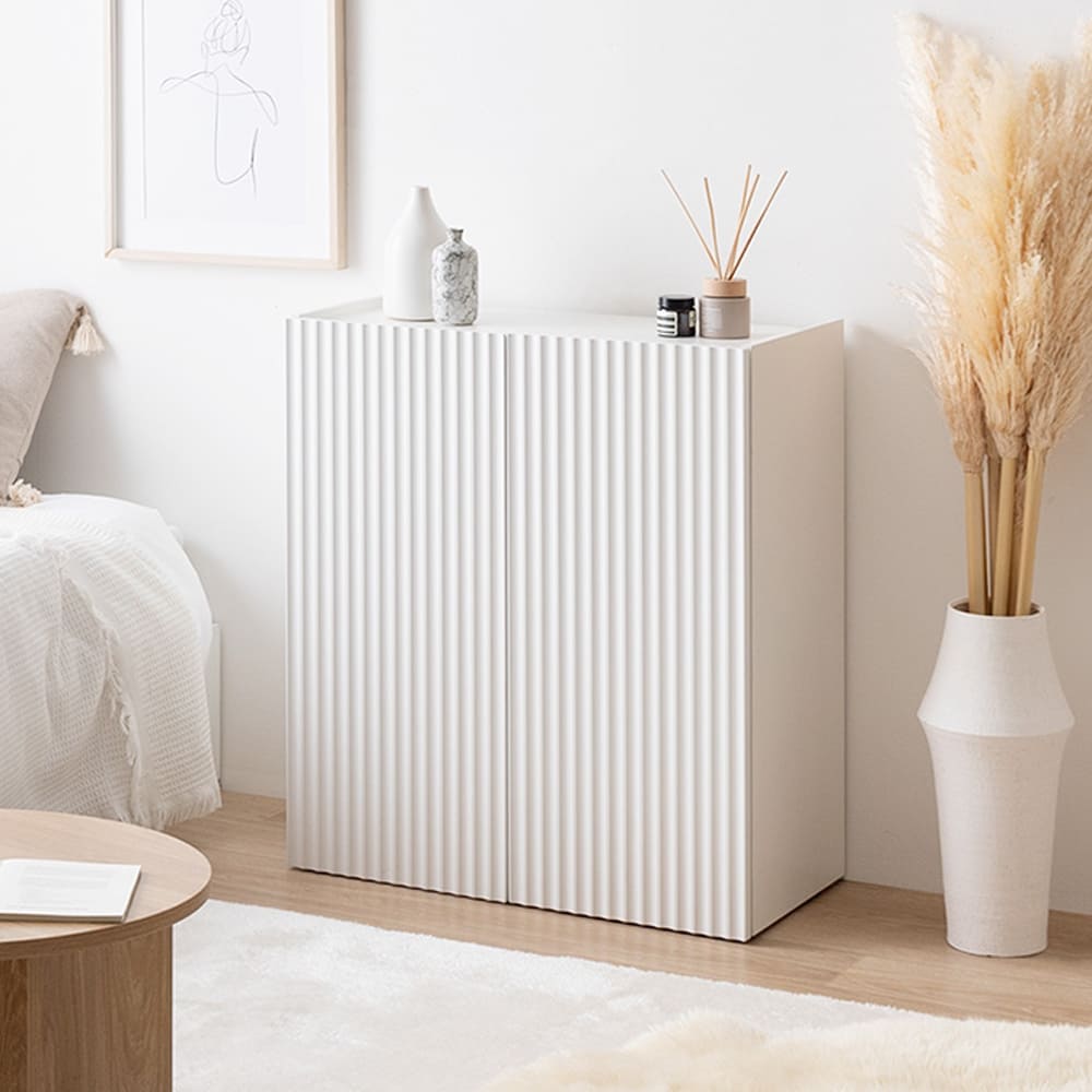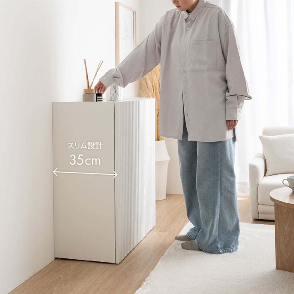 波のようにやさしくカーブした扉デザインと、圧迫感のないコンパクト設計で、リビングや玄関、ワンルームでも大活躍。