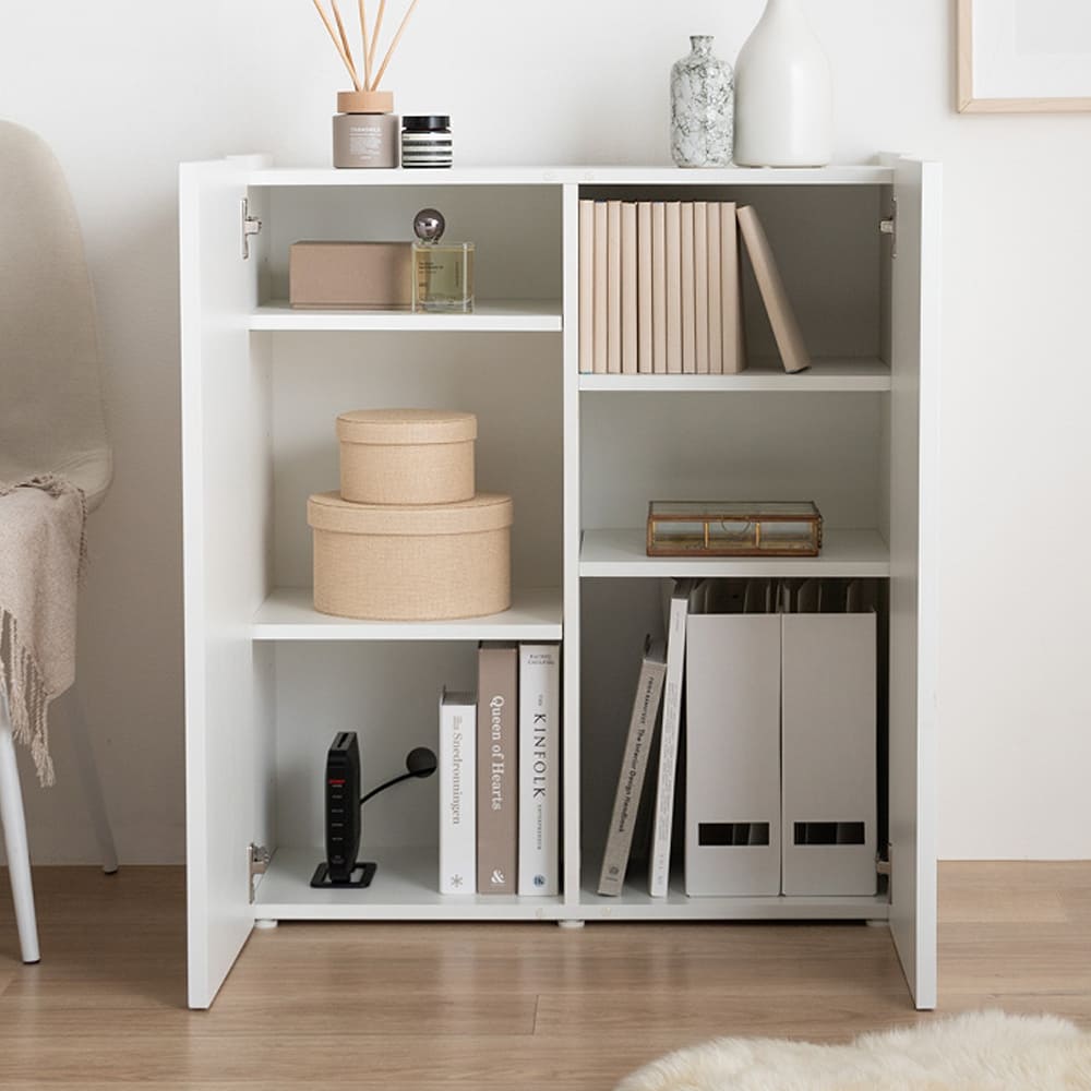 収納部には高さ調整できる可動棚が4枚付属しており、本や雑貨、小物などアイテムに合わせて自由にカスタマイズできます。