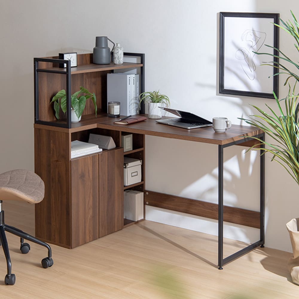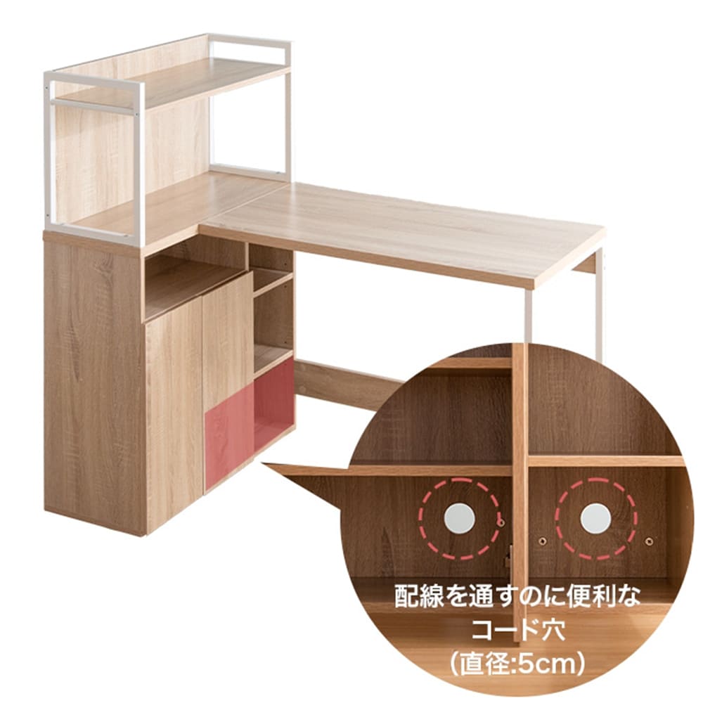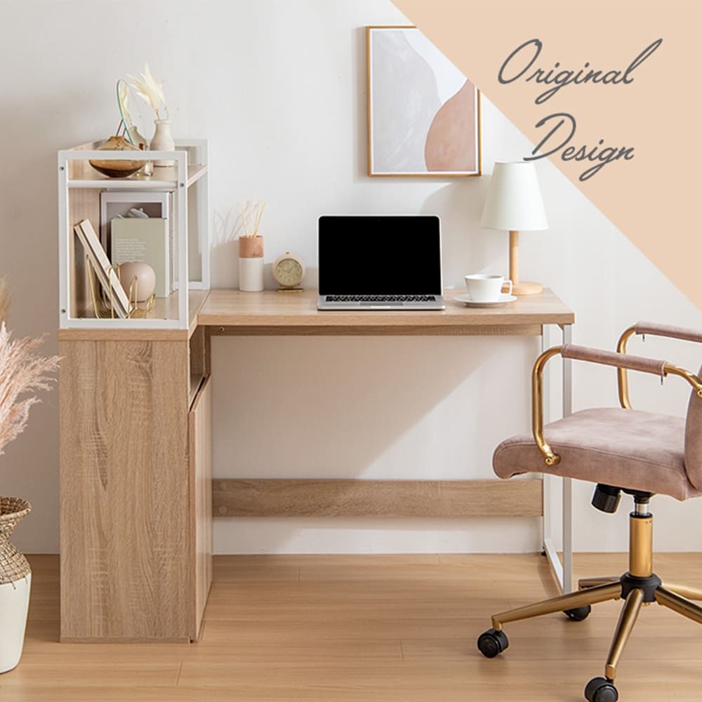 オープンラックと扉収納を備え、デスク周りに必要なものをすっきりと纏めることができます。