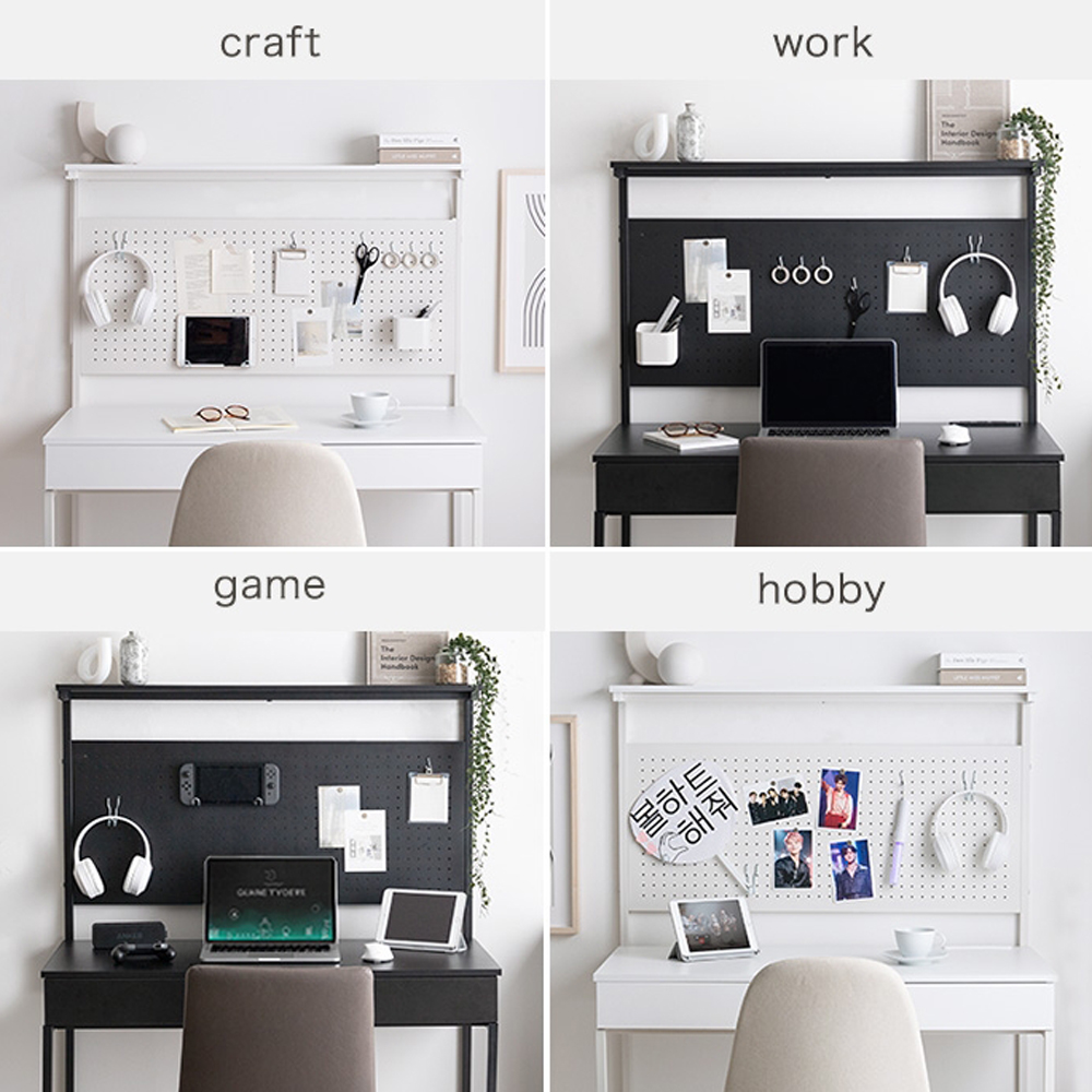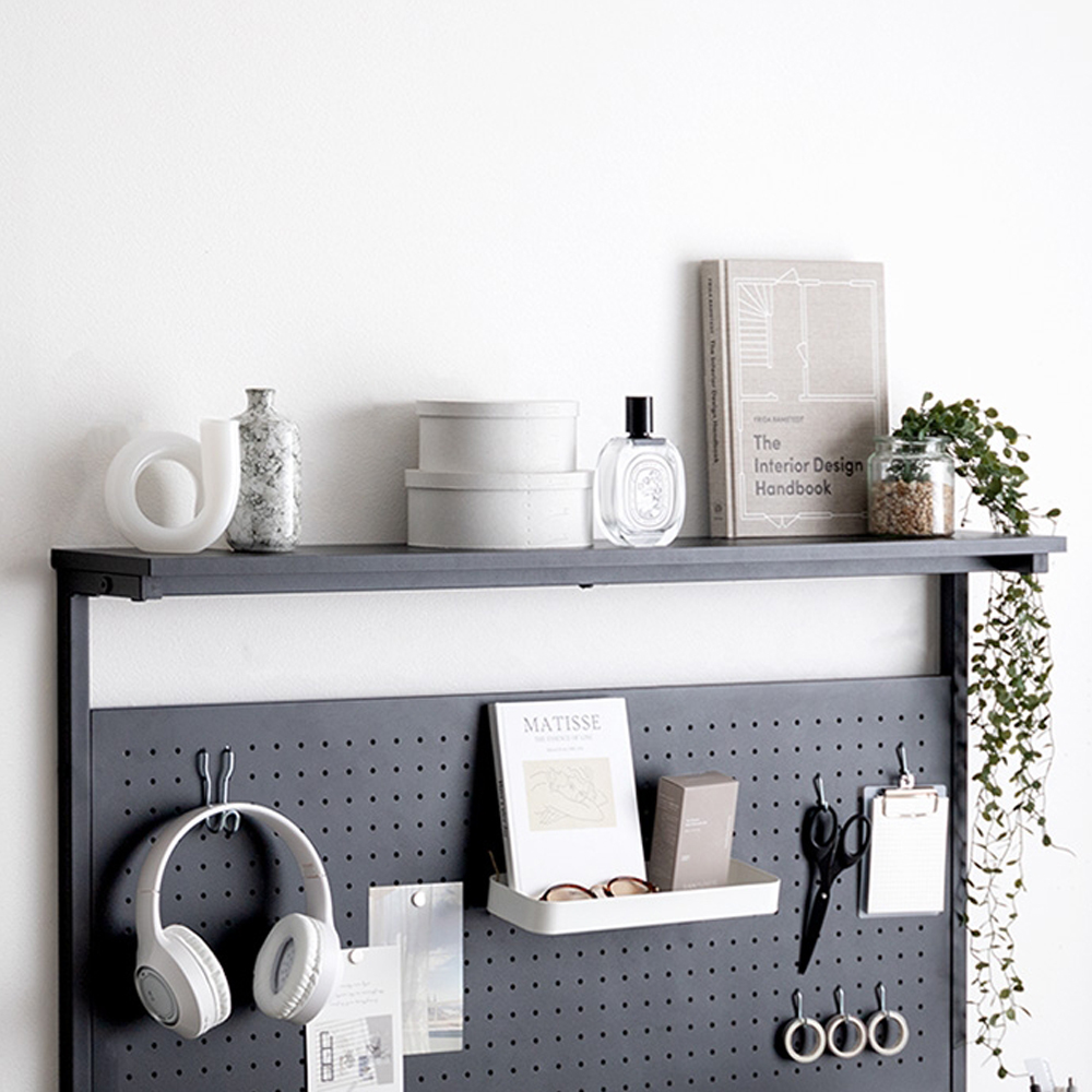 2種類のフックが付属しており、文房具やヘッドホン、写真などをスッキリ飾って収納できます。