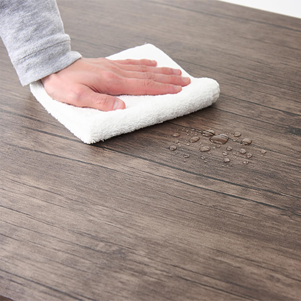 さらに、天板は全体がPVCシートで覆われており、水や汚れに強く、お手入れも簡単。飲み物をこぼしてもサッと拭くだけでキレイが保てます。
