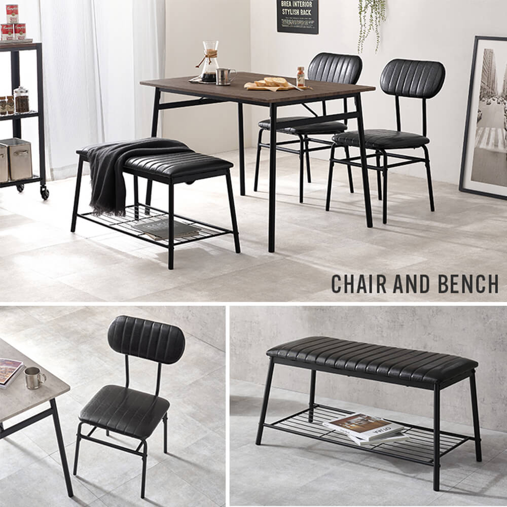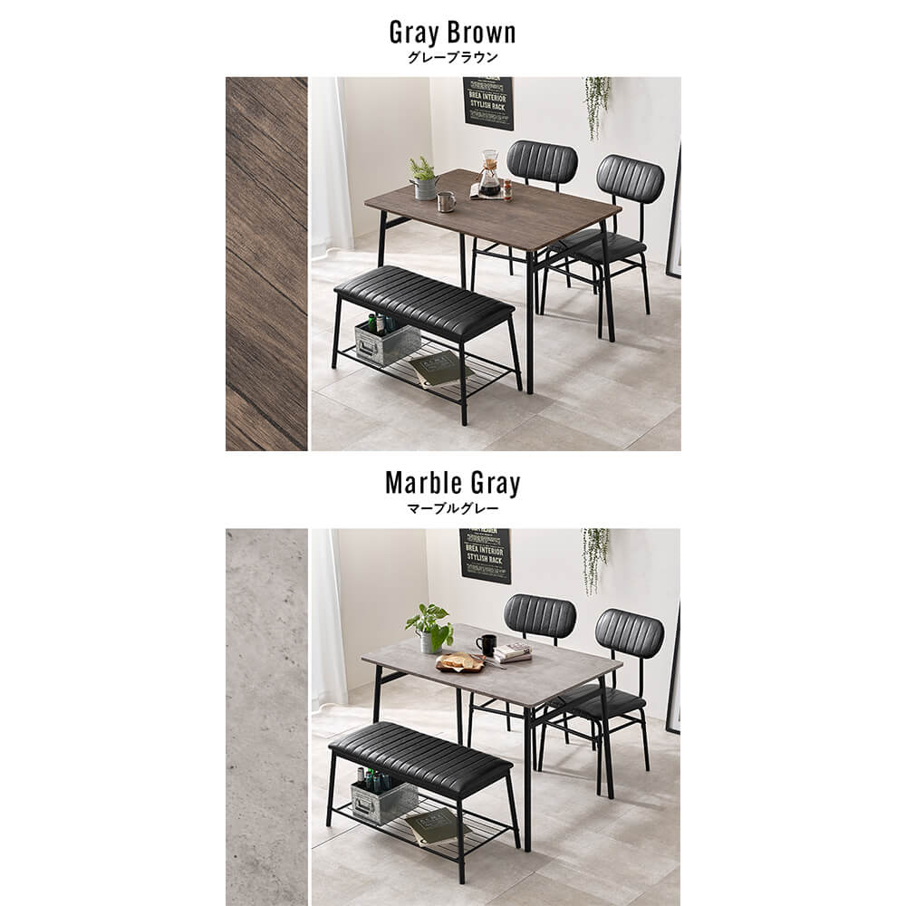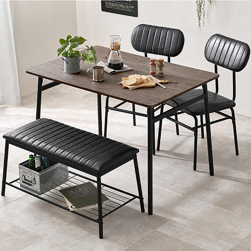 チェア2脚 × ベンチ1脚 × テーブル1台の組み合わせ。