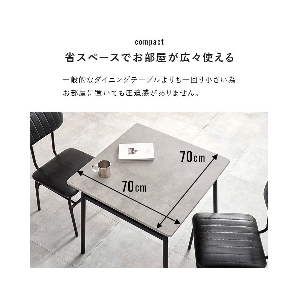 サイズは一般的なダイニングテーブルよりも一回り小さめなので圧迫感がなく、限られたスペースでも広々とした印象に。