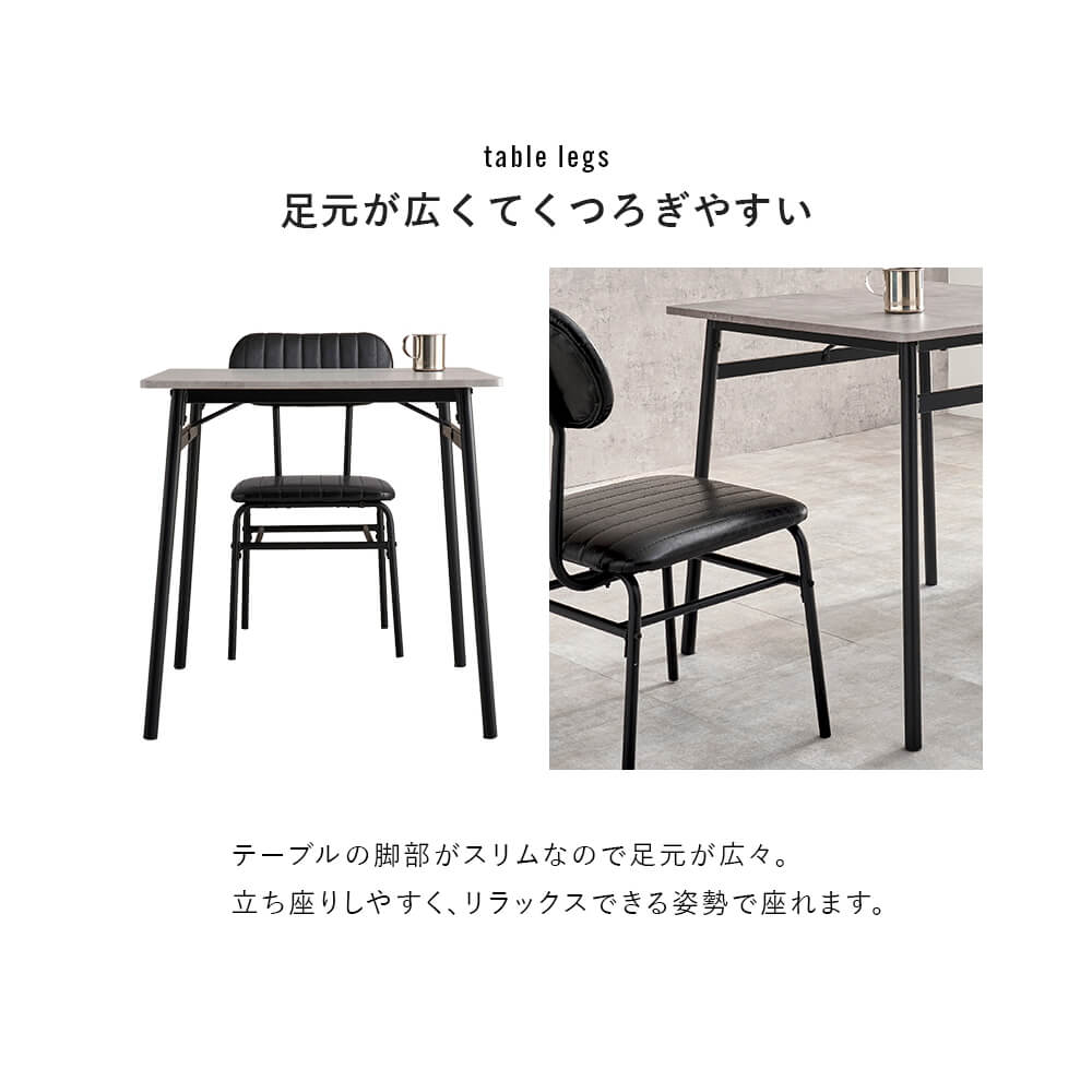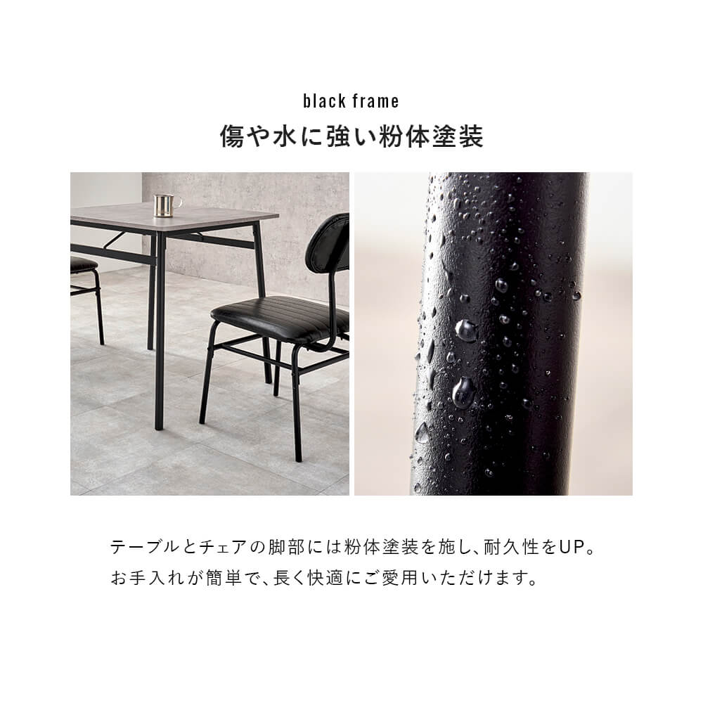 テーブルとチェアの脚部には粉体塗装を施し、耐久性をUP。