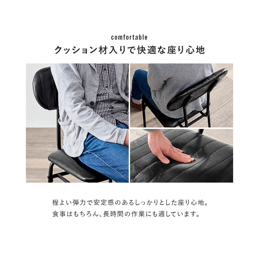チェアの座面にはクッションが入っていて、長時間座っていてもおしりが痛くなりにくいのもポイント。