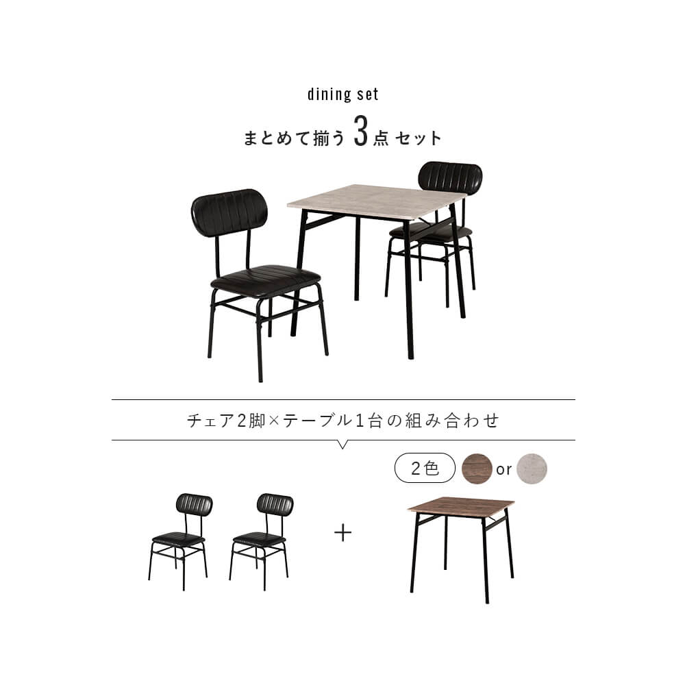 こちらはテーブル、チェア2脚の計3点セットとなります。