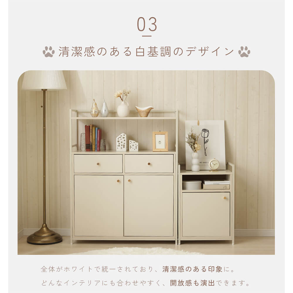 ナチュラルなホワイトカラーと、すっきりとした北欧風デザインが特徴で、どんなお部屋にもなじみやすいのがポイント。