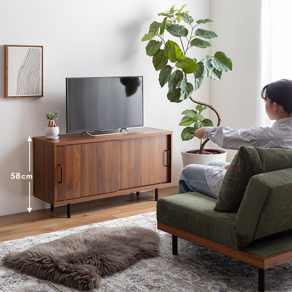 高さ58cmの設計で、ソファに座ったときに目線がぴったり合い、リラックスしてテレビ鑑賞が楽しめます。