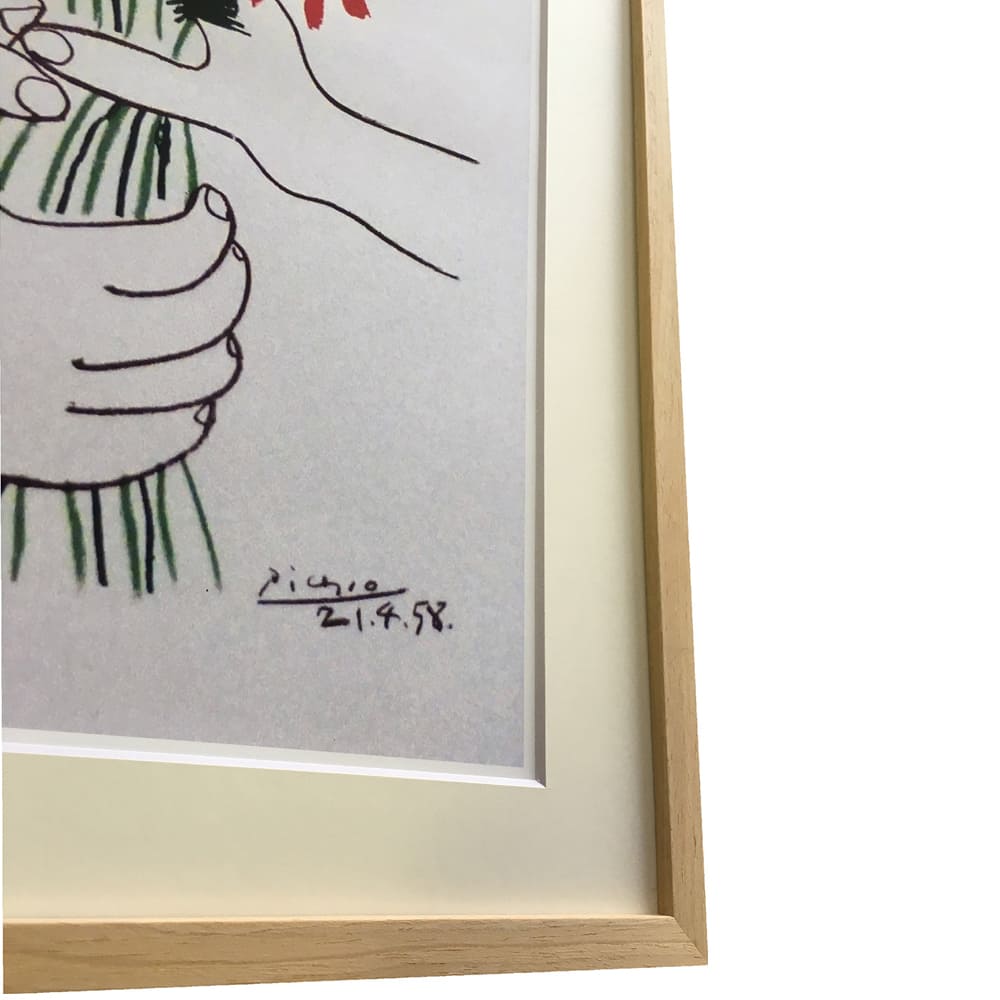 ピカソが描いた名作「Le Bouquet」を、美しい天然木のフレームでお届け。