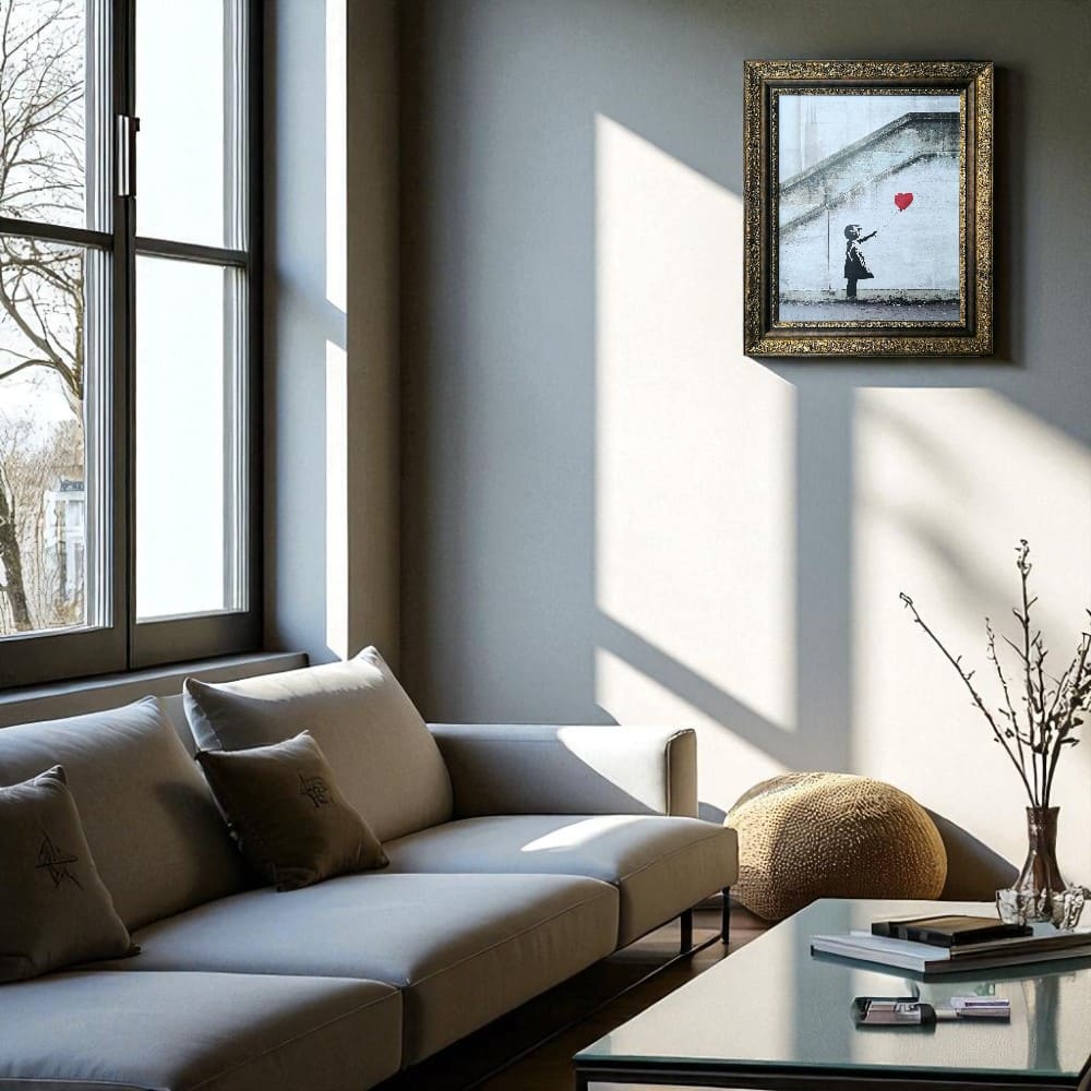 世界が驚いたバンクシーの「シュレッダー事件」を、重厚なアンティーク風フレームで再現。アートと風刺が交差する衝撃の瞬間を、あなたのお部屋に。