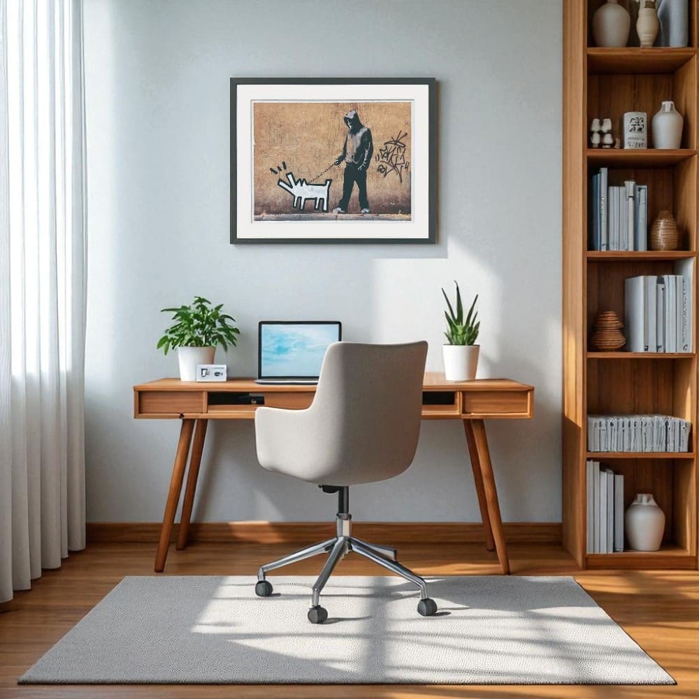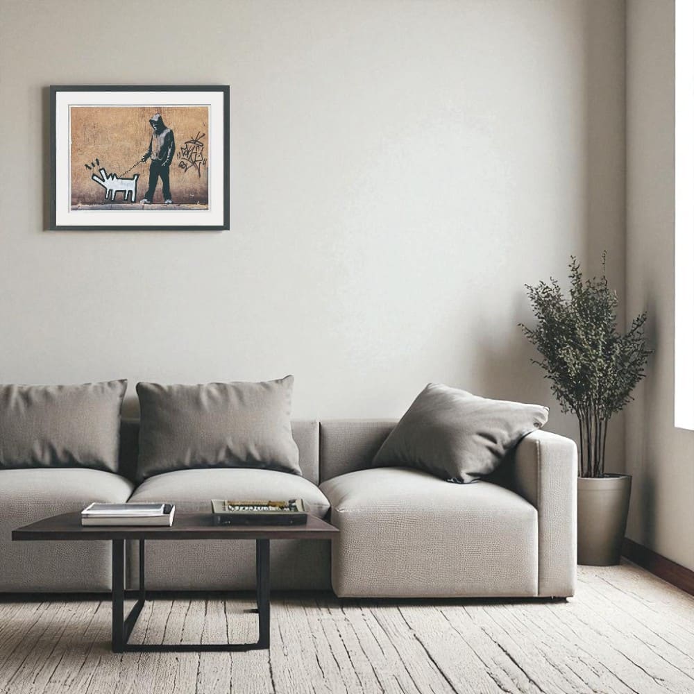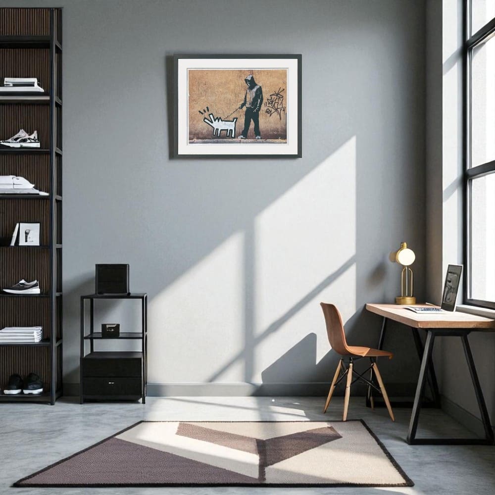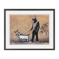 イギリスの覆面アーティスト、バンクシーの代表作「Choose Your Weapon」を、おしゃれな黒フレームで仕上げたアートポスターです。