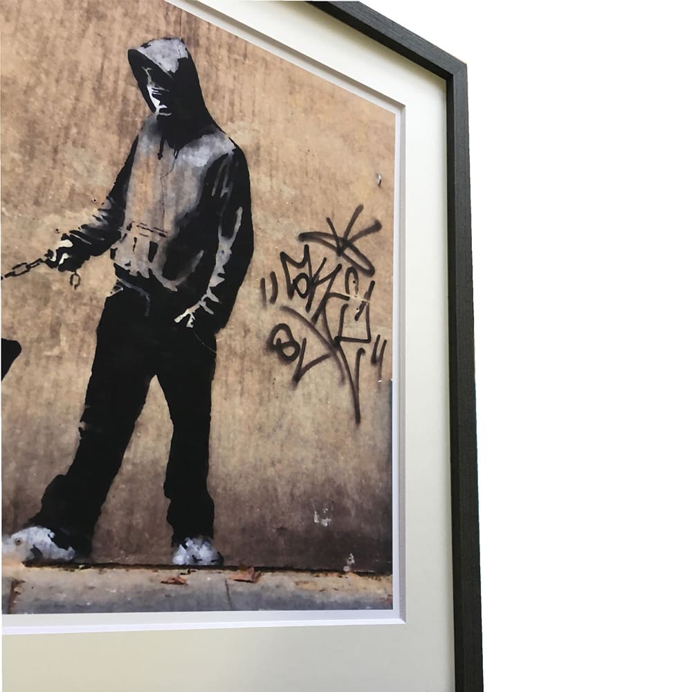 現代アートの巨匠・バンクシーの名作「Choose Your Weapon」を高品質フレーム付きでお届け。